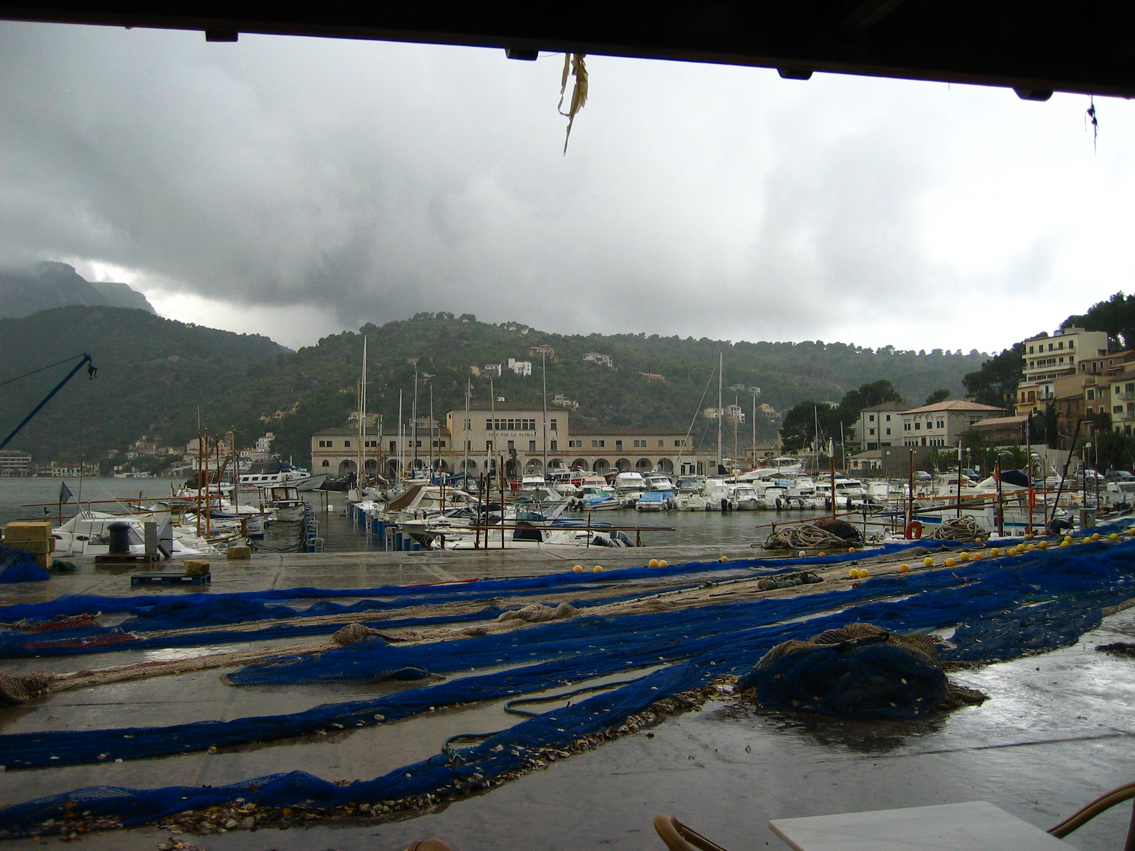 Redes a secar en el Puerto de Sóller, Mallorca, Islas Baleares