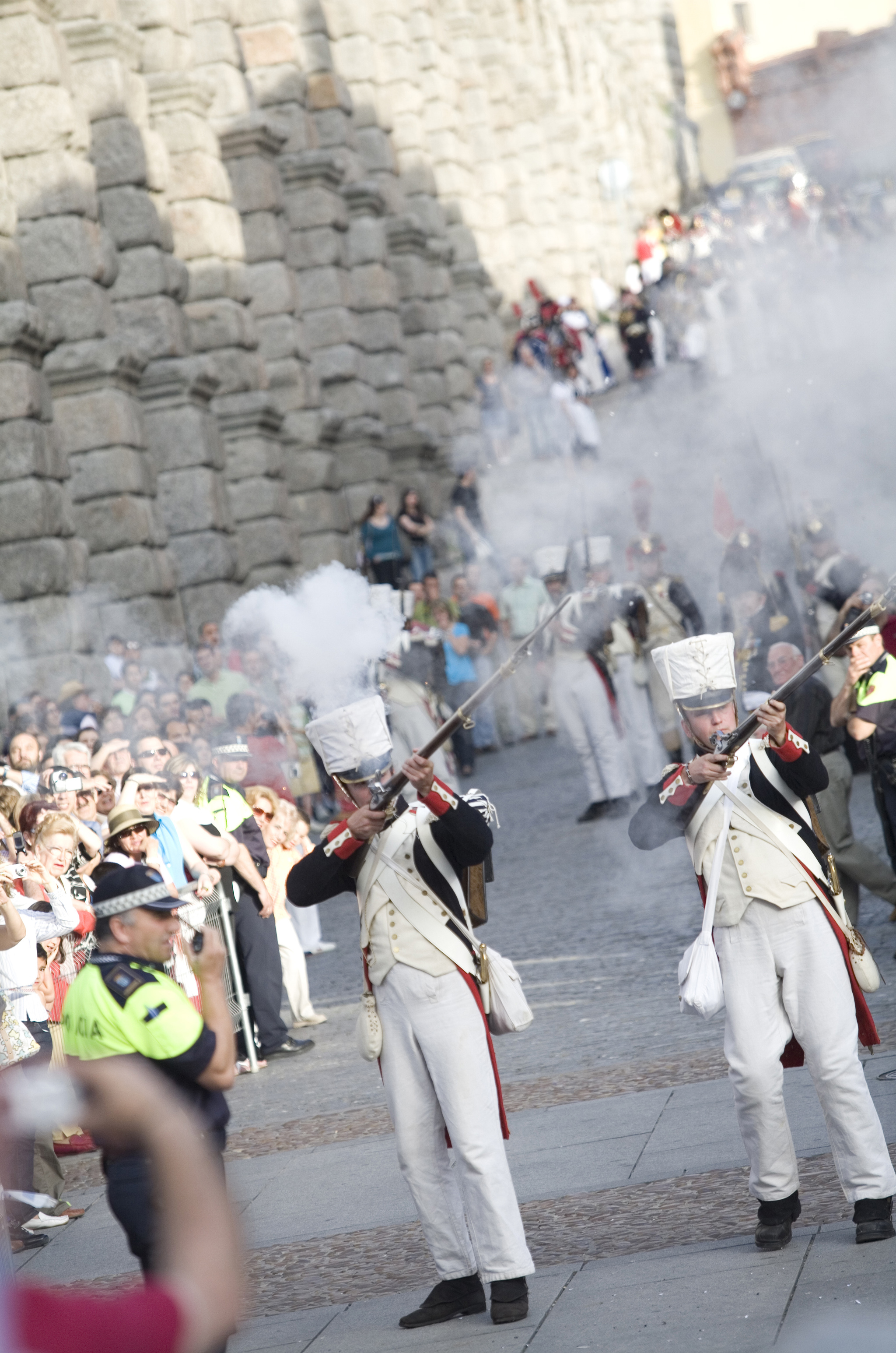 Recreación de la Guerra de la Independencia en Segovia: Demostración de disparos junto al Acueducto de Segovia