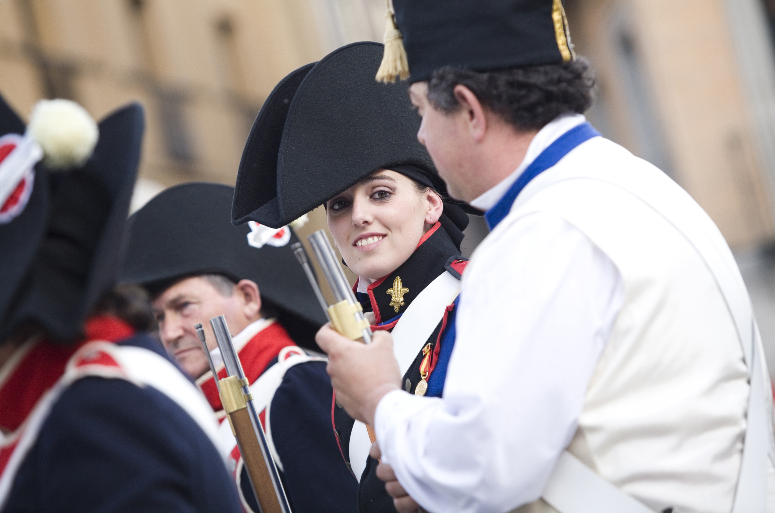 Recreación de la Guerra de la Independencia en Segovia: Tropas napoleónicas preparadas para el combate