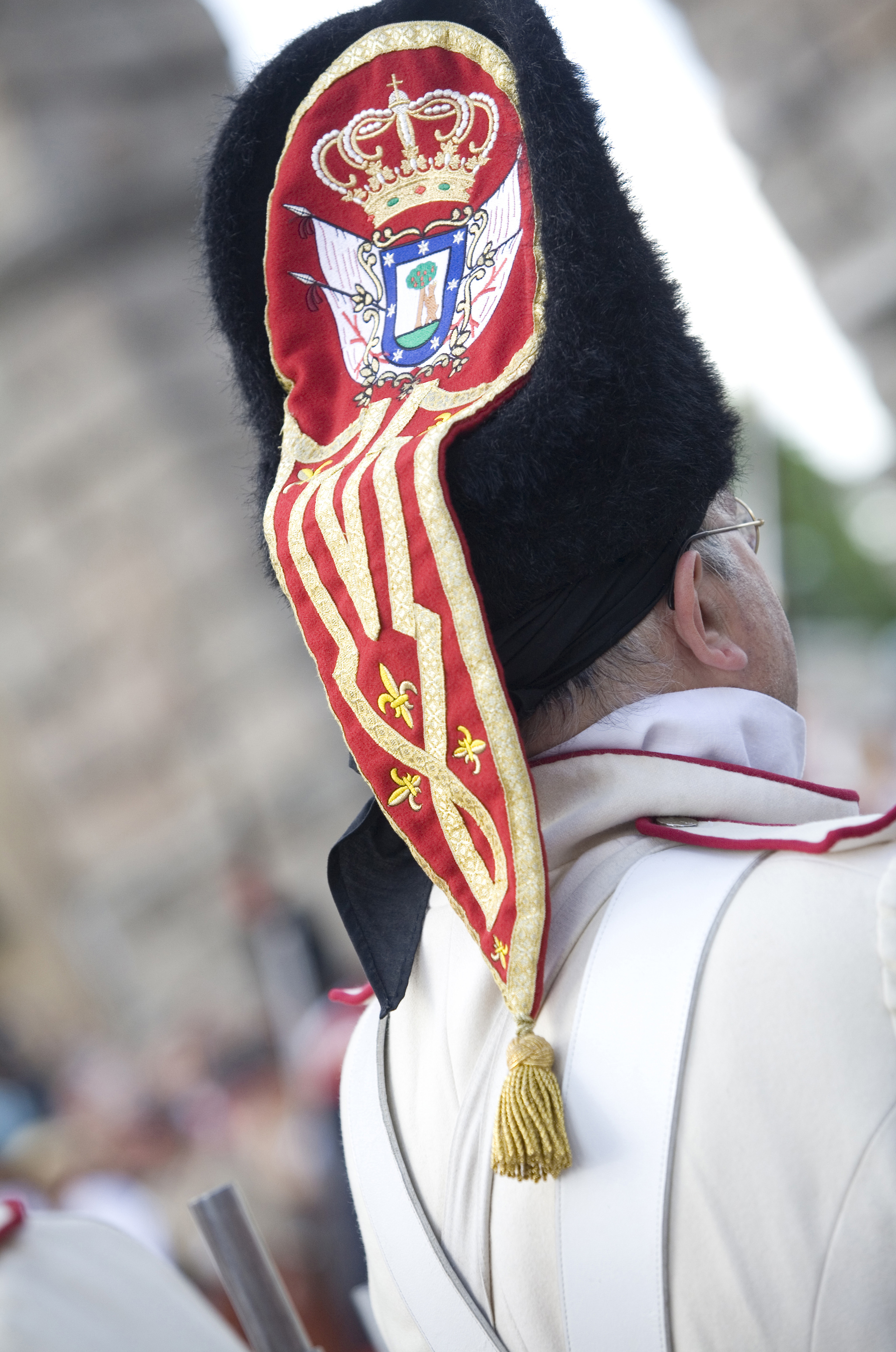Recreación de la Guerra de la Independencia en Segovia: Detalle del sombrero de un militar español.
