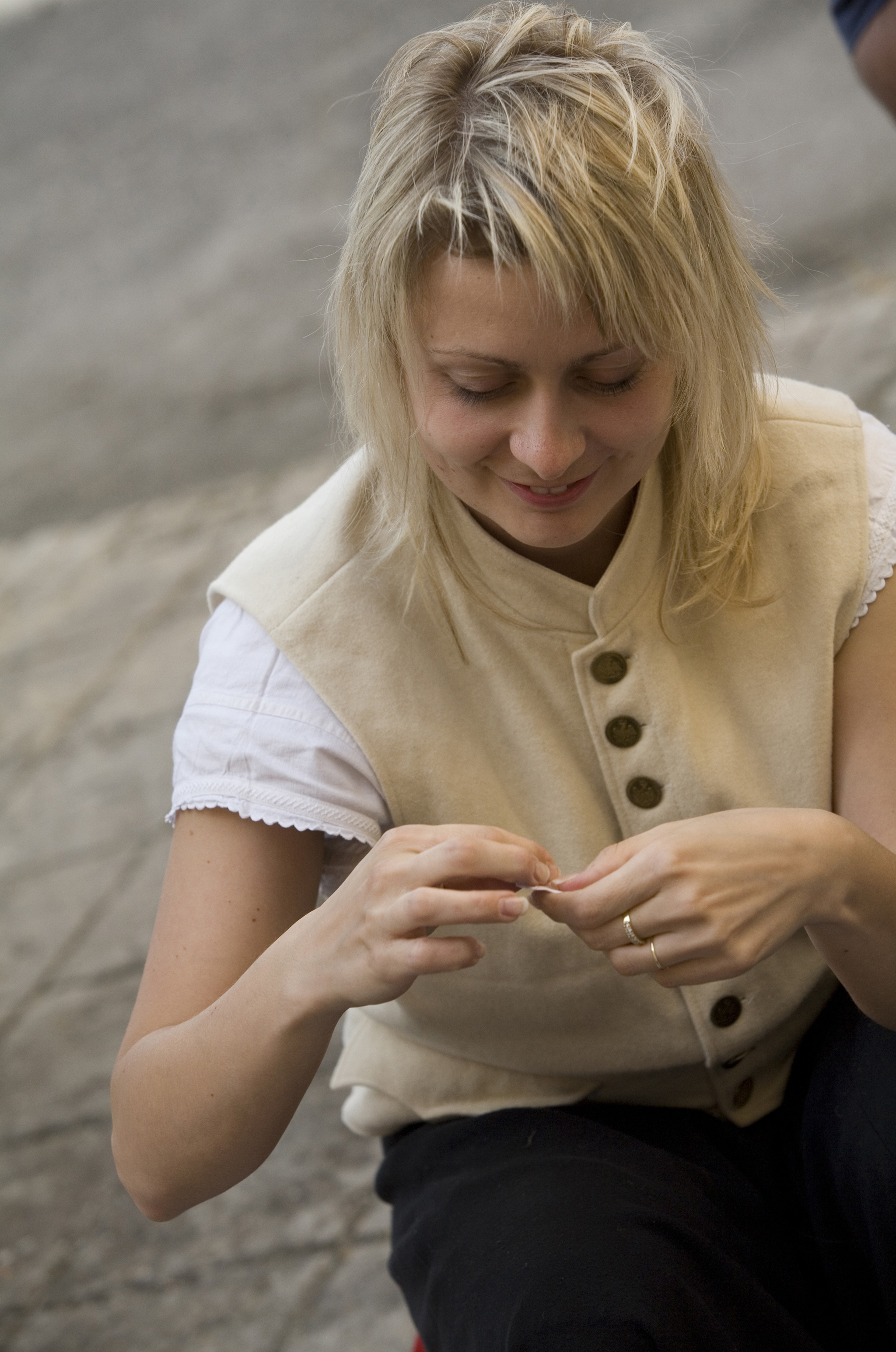 Recreación de la Guerra de la Independencia en Segovia: Mujer de las tropas napoleónicas preparando munición para el combate