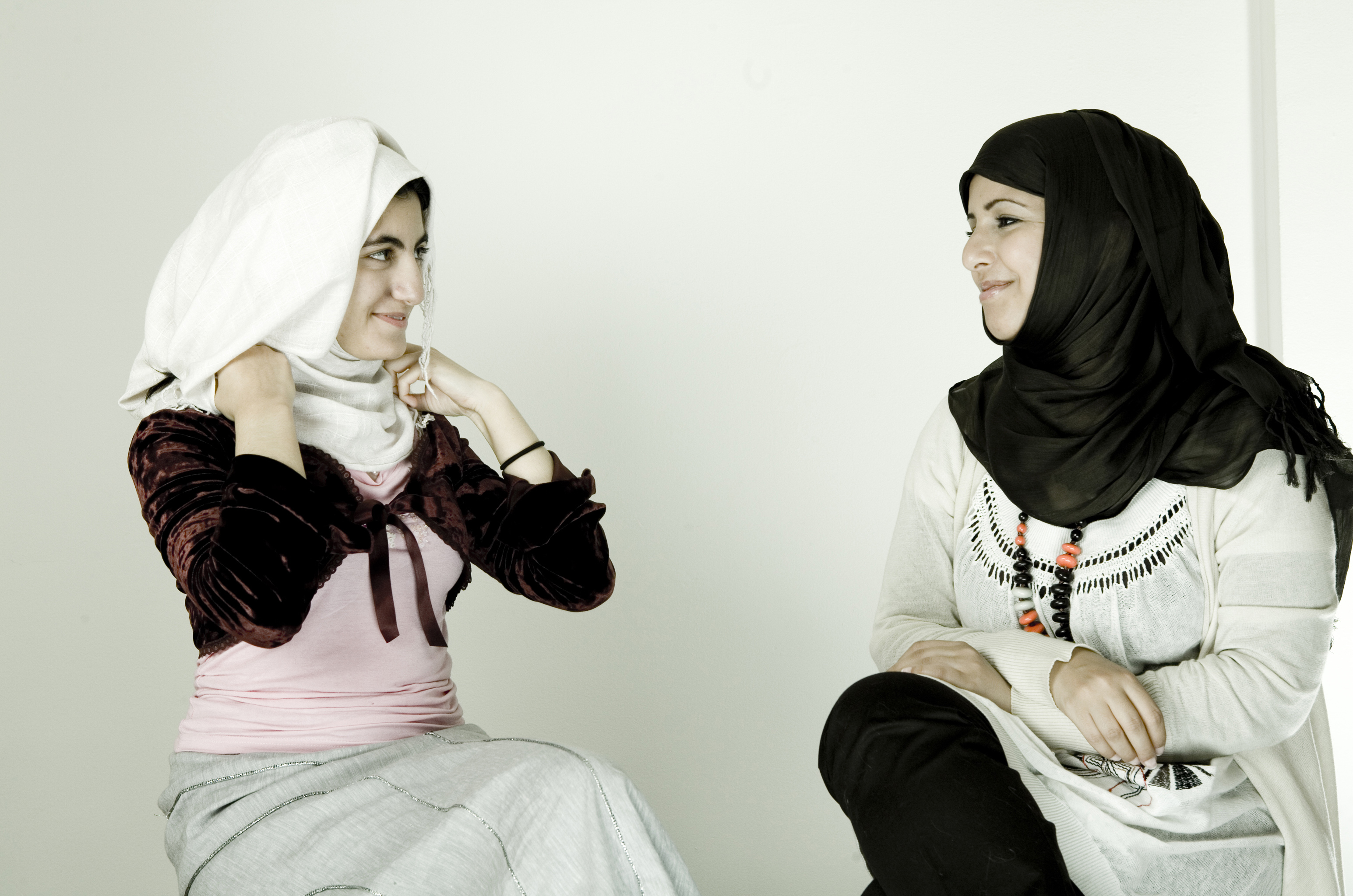 Dos mujeres inmigrantes de Libia y Arabia Saudí se ponen el velo islámico