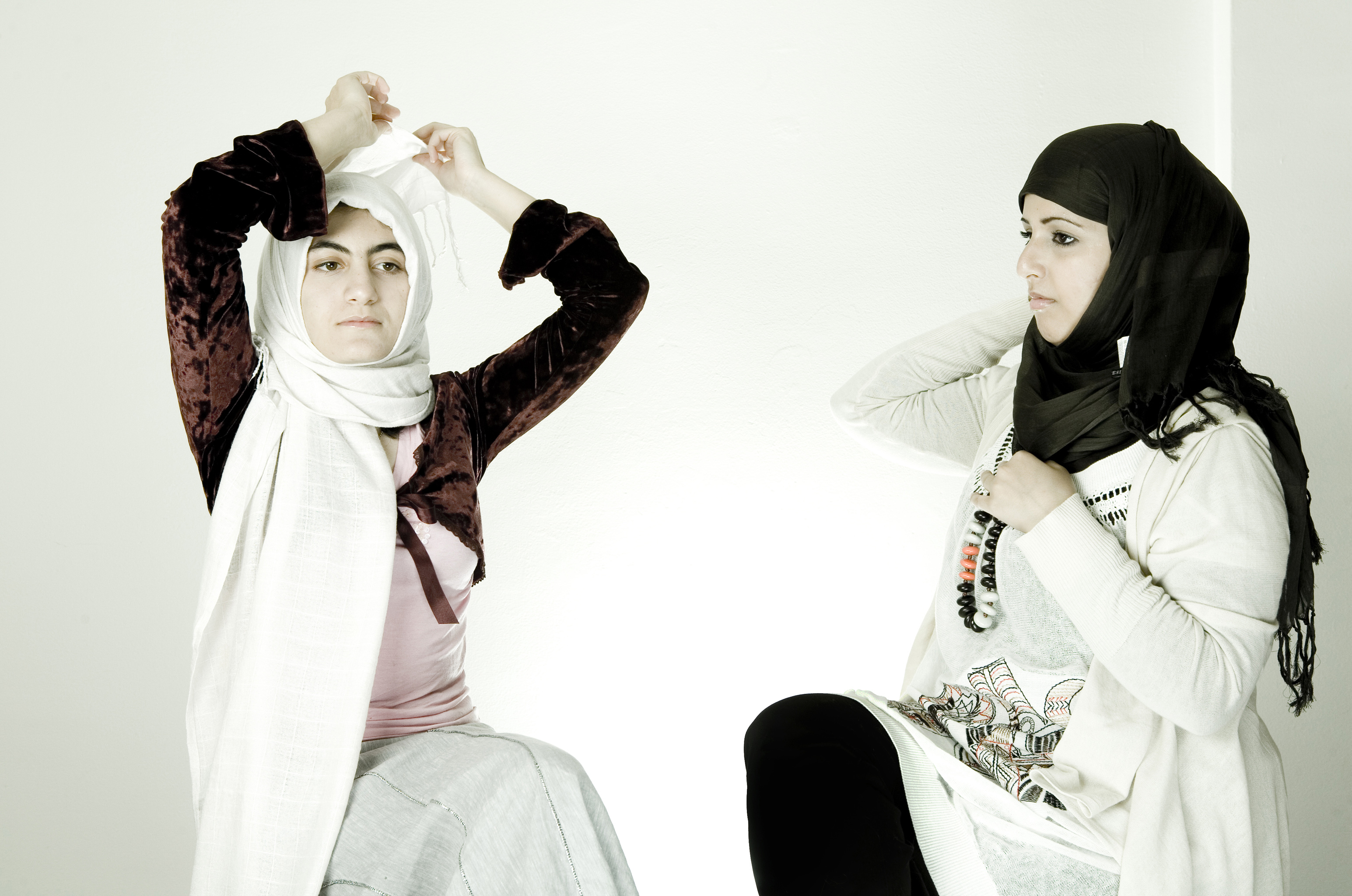 Dos mujeres inmigrantes de Libia y Arabia Saudí se ponen el velo islámico