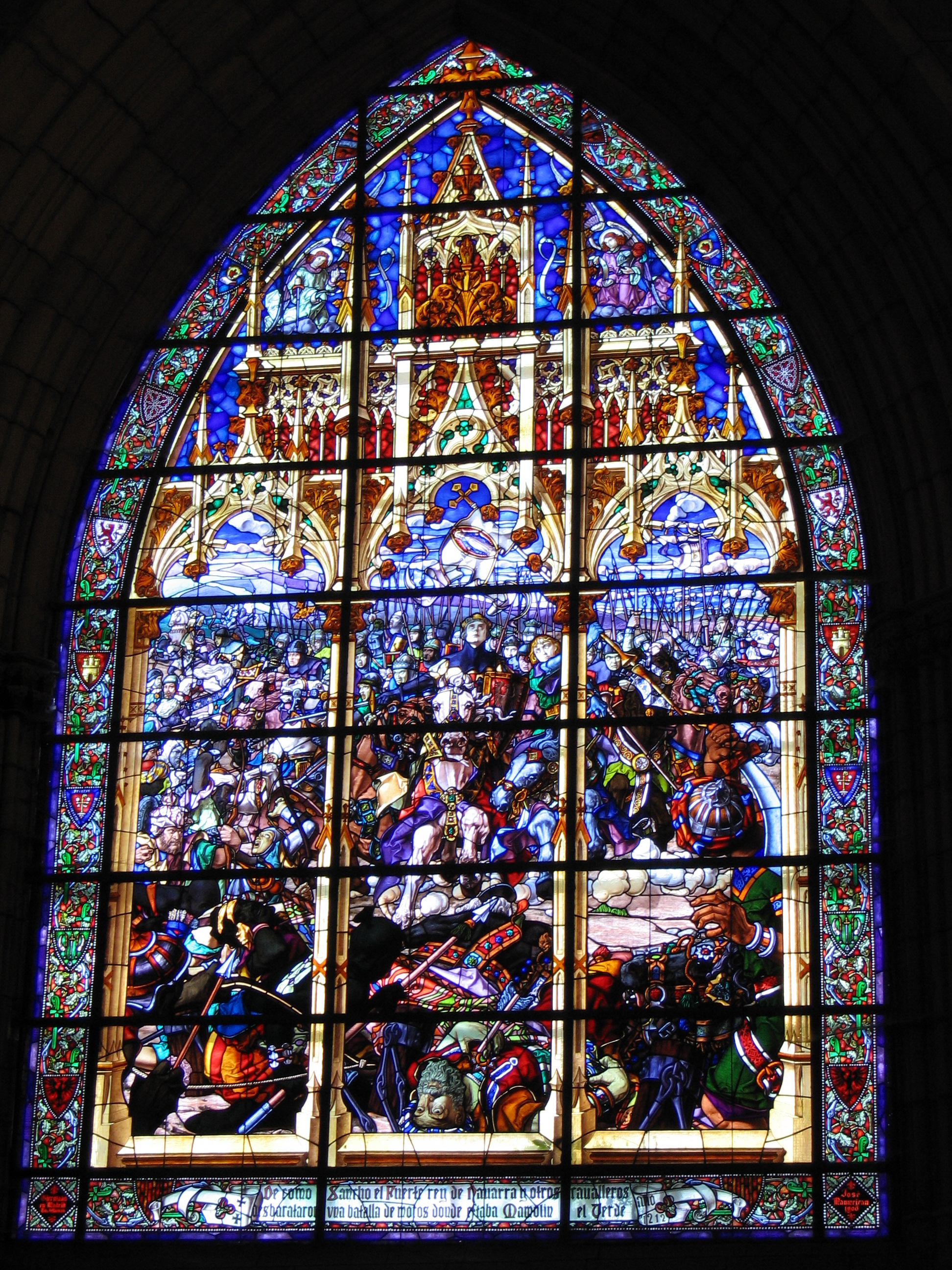 Vidriera de la Batalla de las Navas de Tolosa en la Sala Capitular de la Capilla de San Agustín, Roncesvalles, Navarra