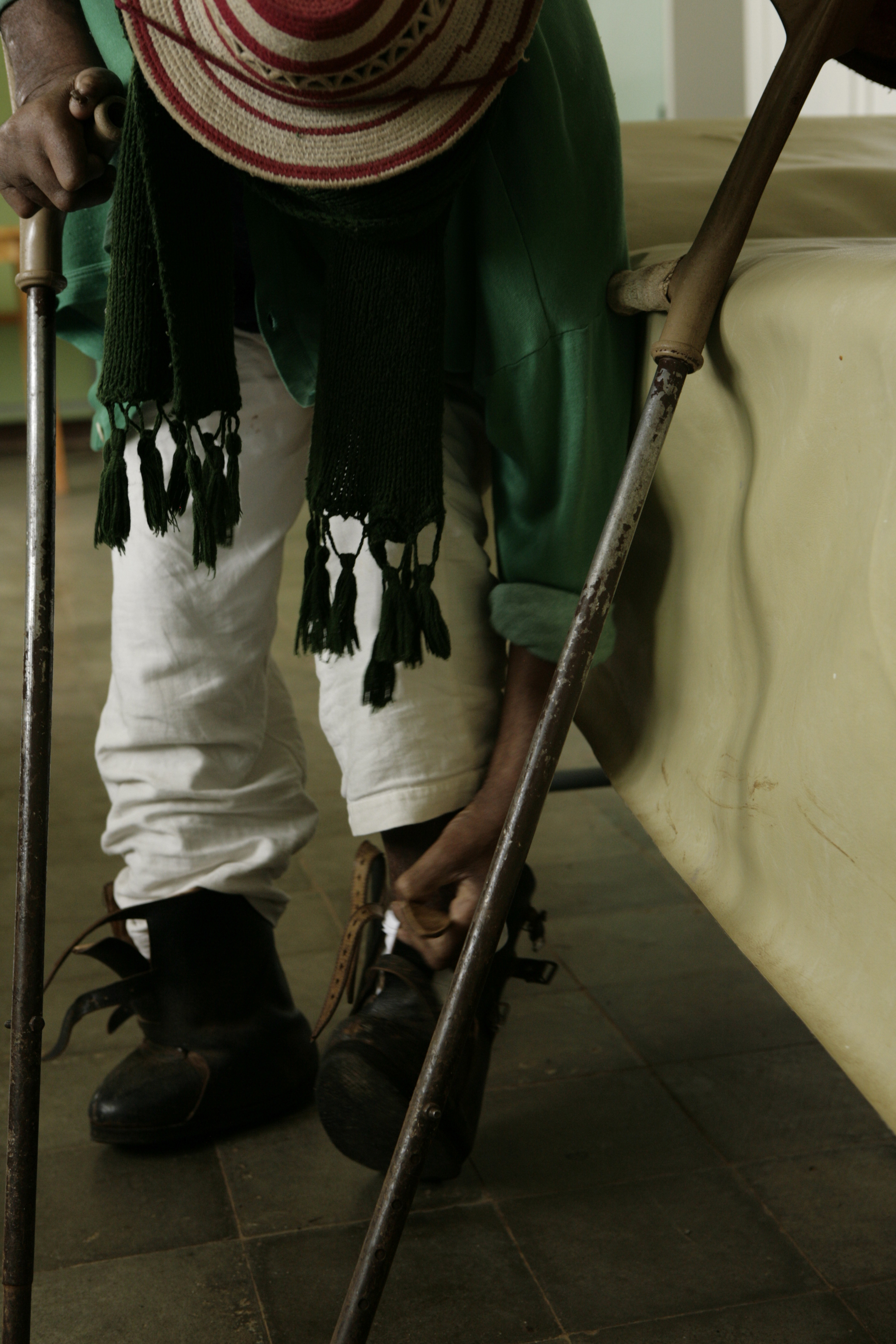 Enfermo de lepra esperando tratamiento, hospital de Gambo, Etiopía