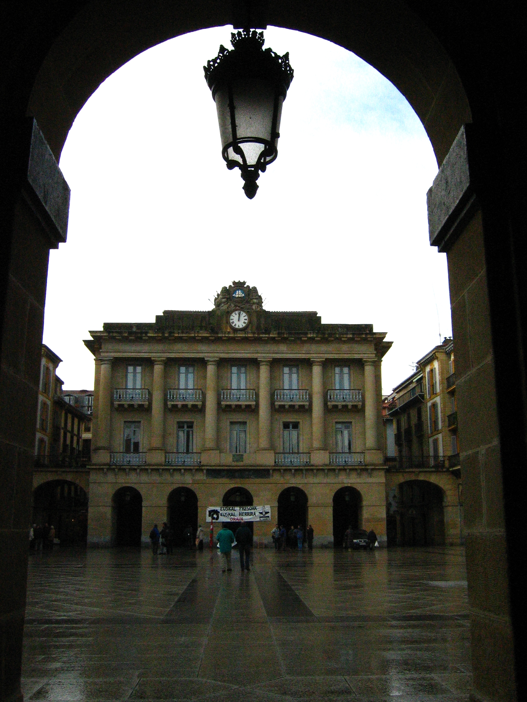 Pancarta en un edificio de la Plaza Mayor, Donostia-San Sebastián, Guipúzcoa