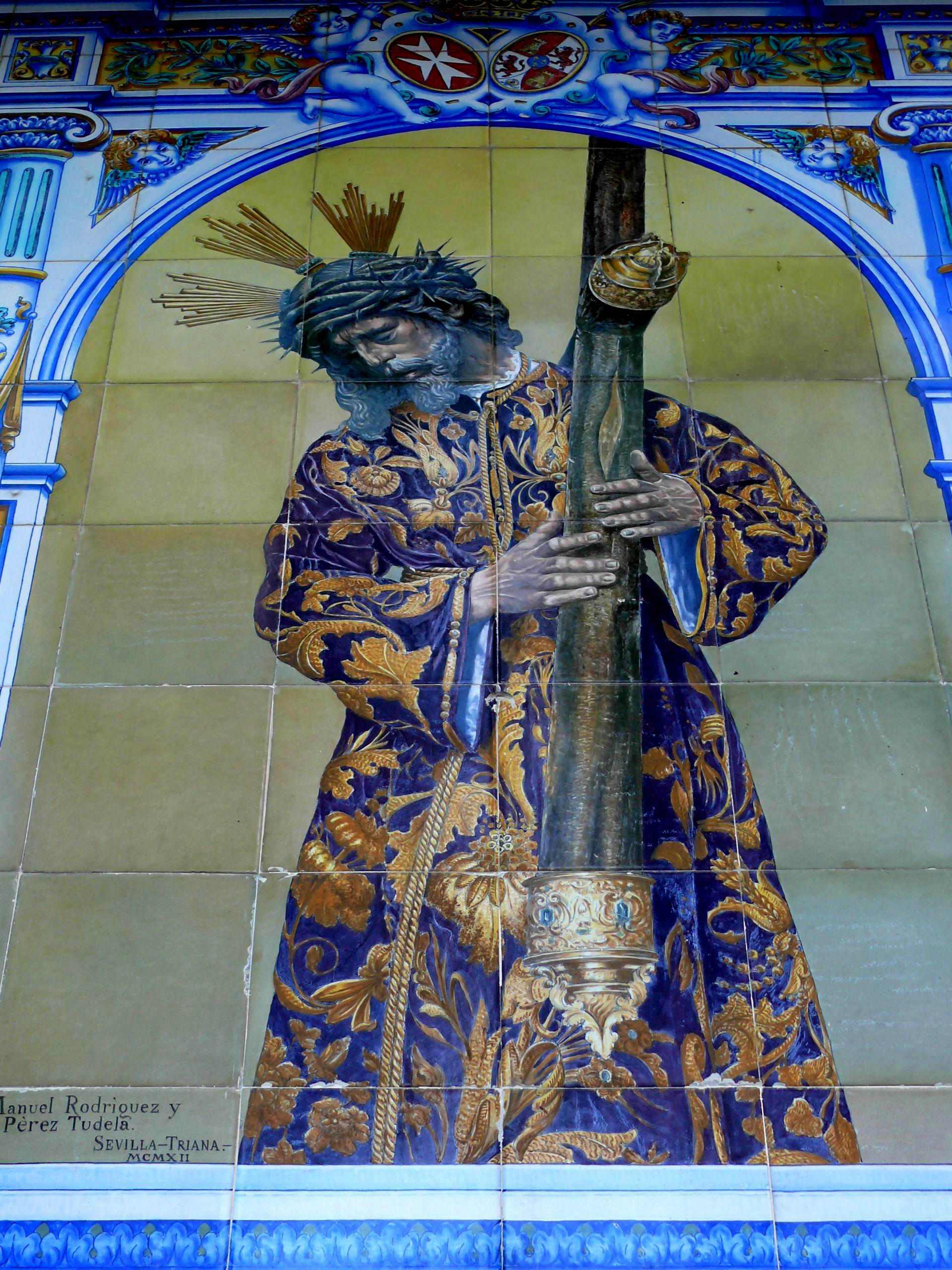 Azulejos decorados con la imagen de un Cristo Nazareno en la Plaza de San Lorenzo, Sevilla