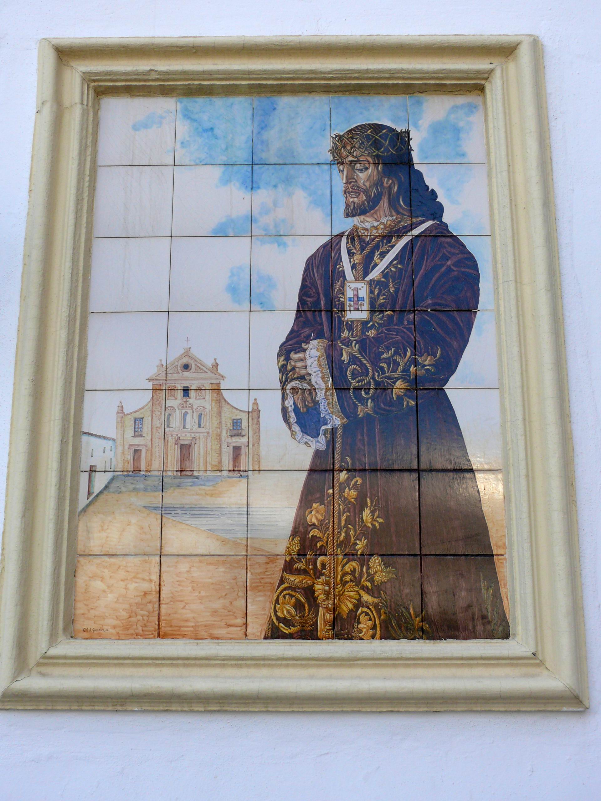 Azulejos decorados con la imagen de un Cristo Nazareno en la Iglesia de la Trinidad, Antequera, Málaga