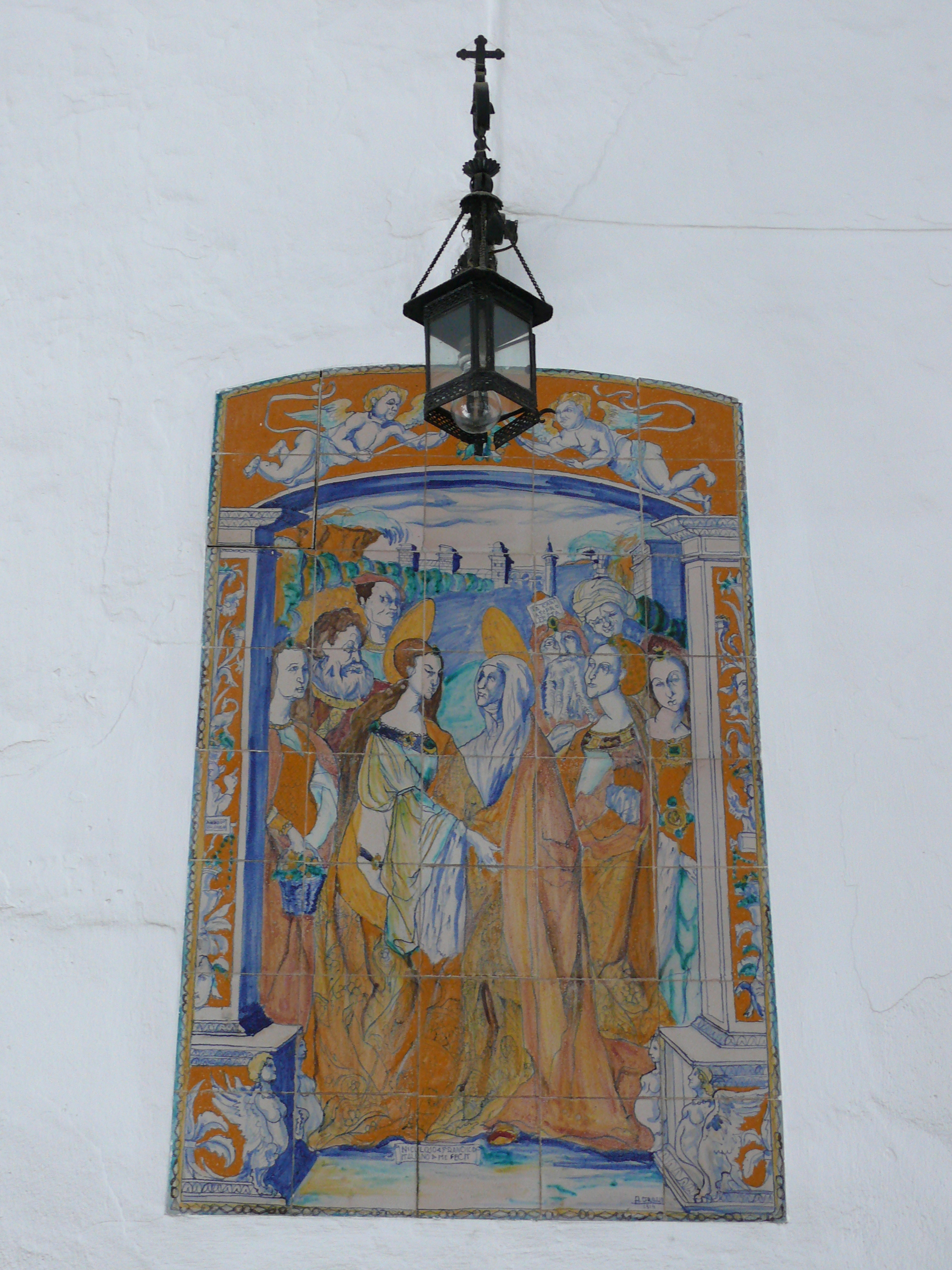Azulejos pintados con una imagen religiosa en la calle San Esteban, Sevilla