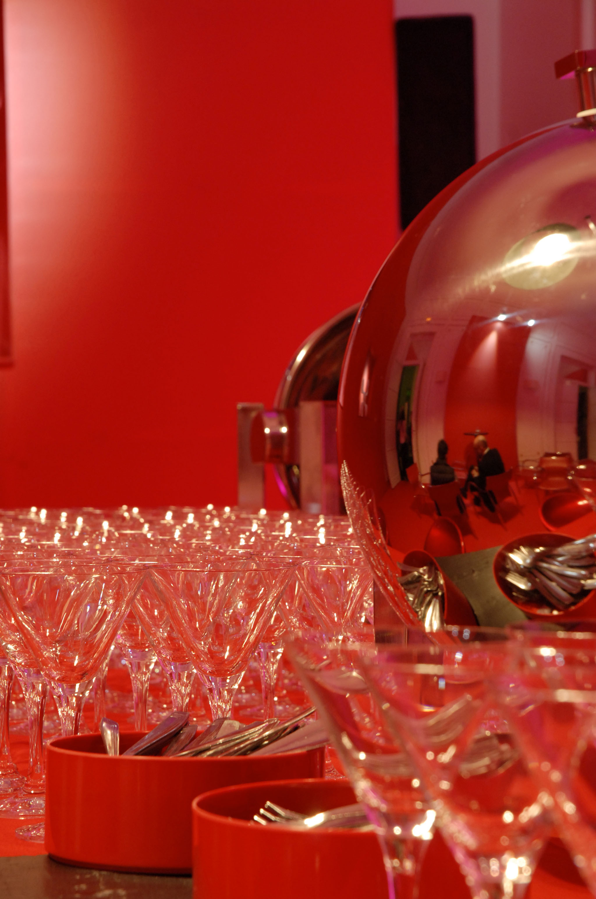 Detalle de unas copas sobre una mesa en una sala del Consulado Italiano de Madrid
