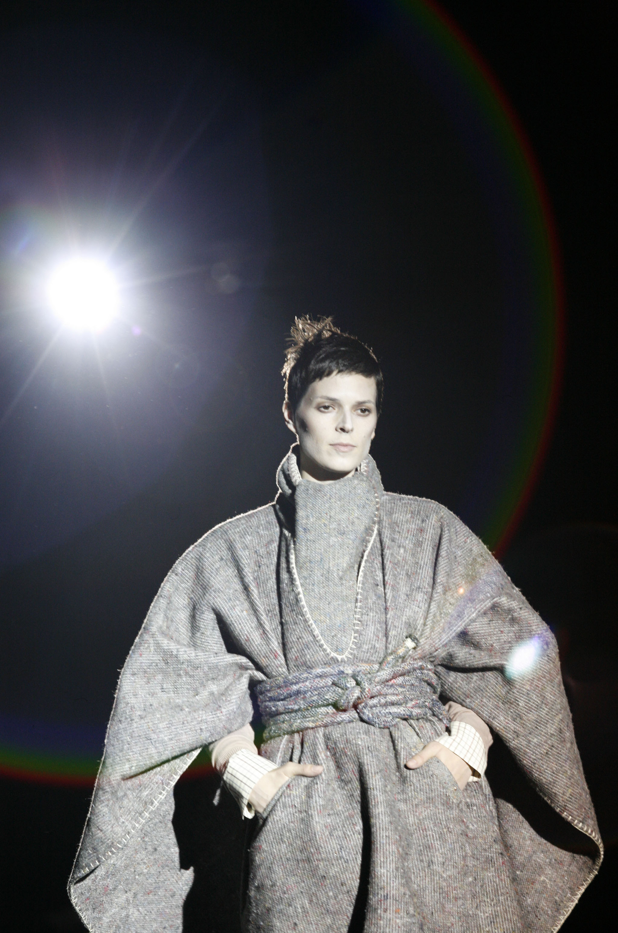 Bimba Bosé desfilando para David Delfín en la Pasarela Cibeles 2007 luciendo la colección de otoño-invierno del diseñador