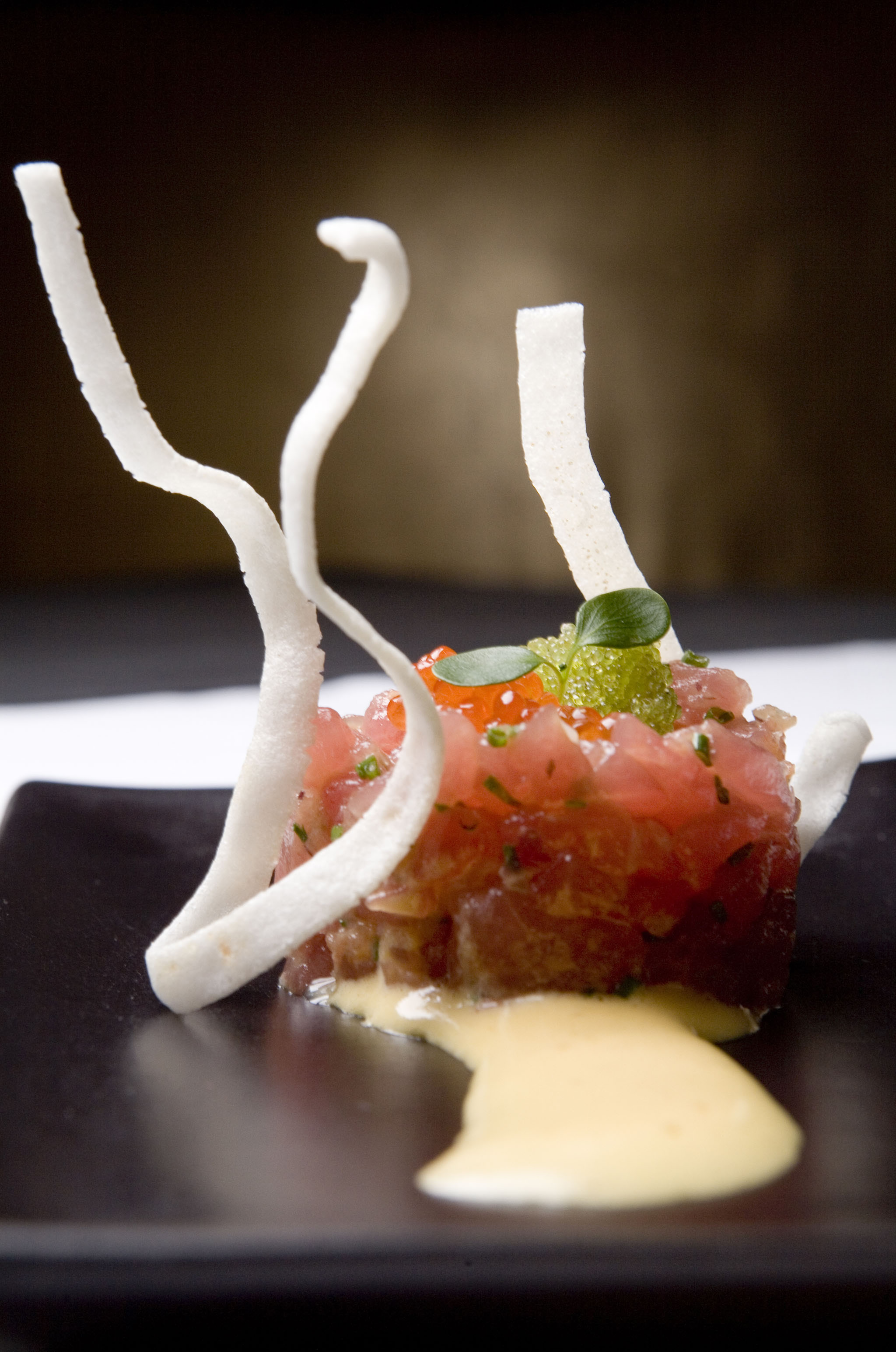 Detalle de un plato de atún teriyaki, técnica de cocción japonesa