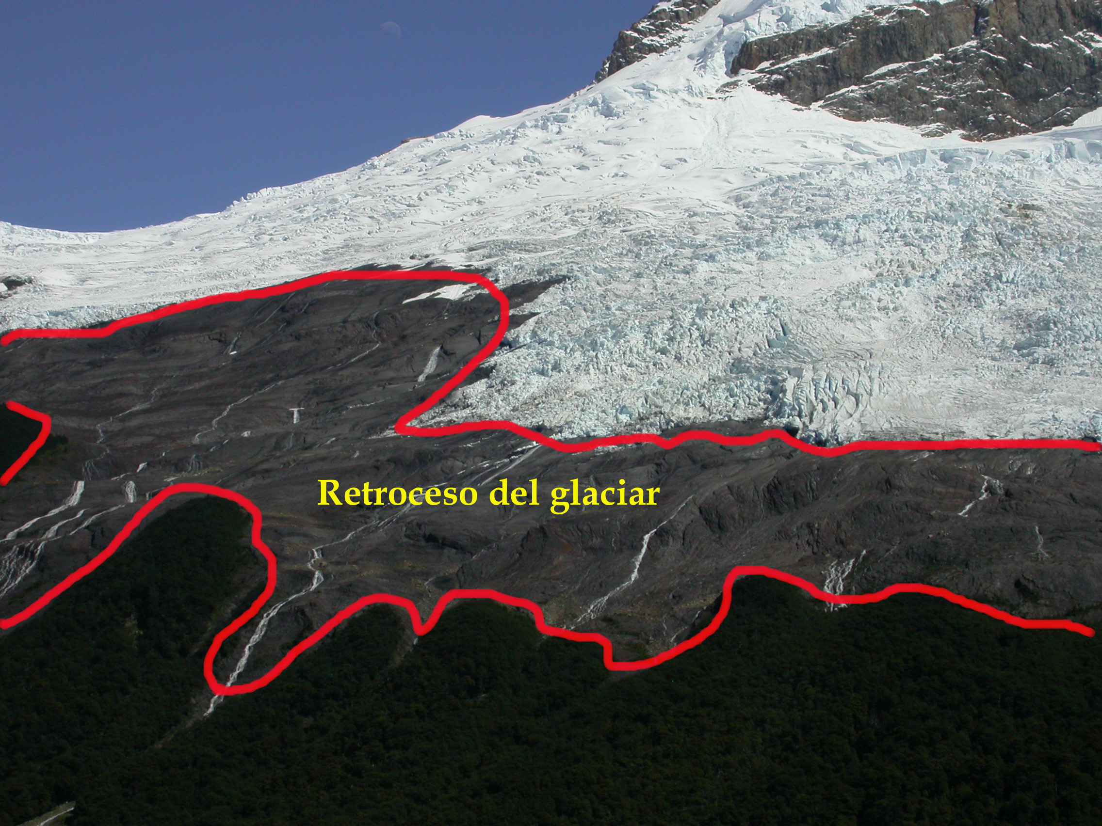 Retroceso del glaciar seco, Patagonia, Argentina