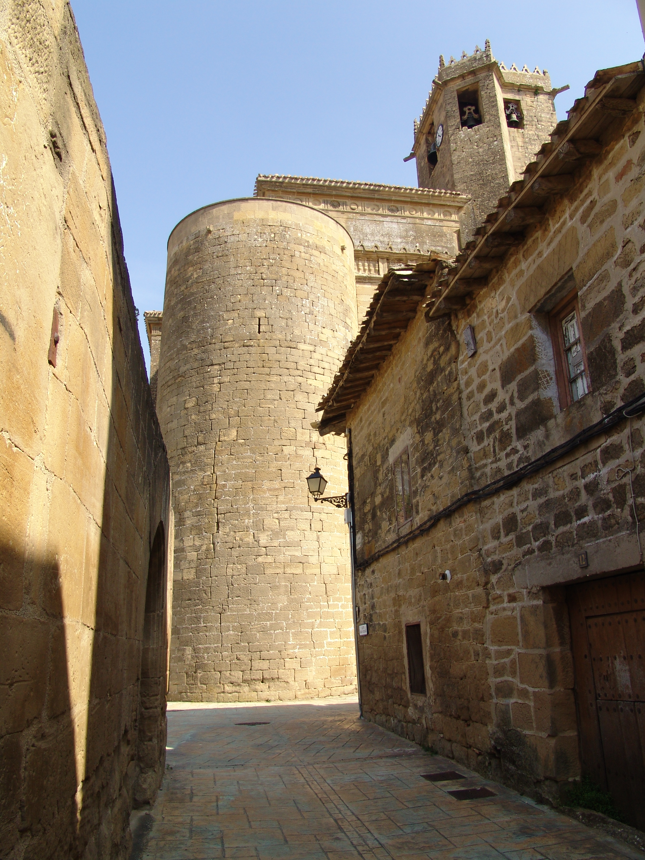Callejuela con iglesia al fondo en Samaniego, La Rioja alavesa