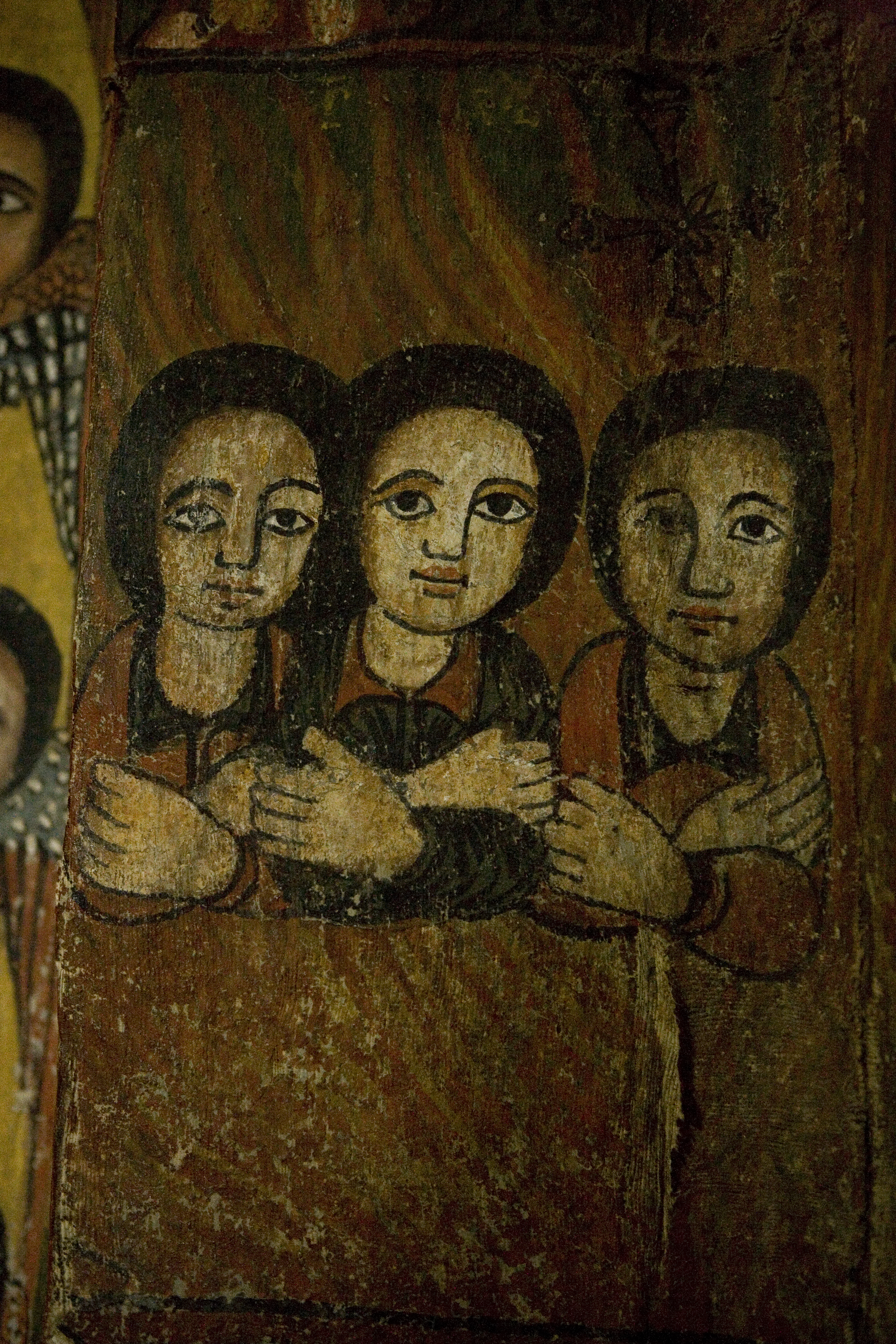 Detalle de las pinturas al fresco, monasterio Debre Birhan Selassie, Etiopía