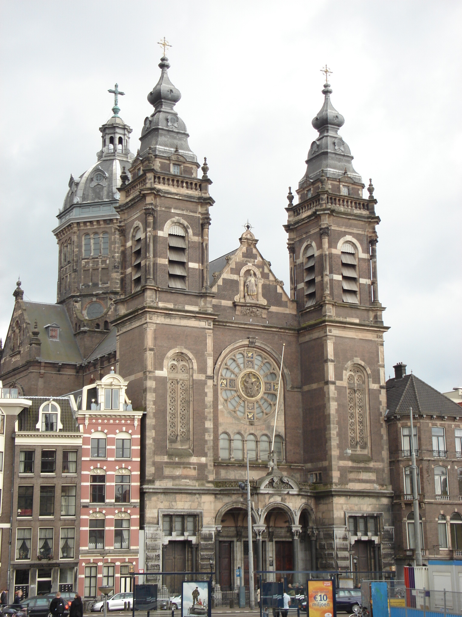 Fachada de la iglesia católica de San Nicolás, Amsterdam, Holanda