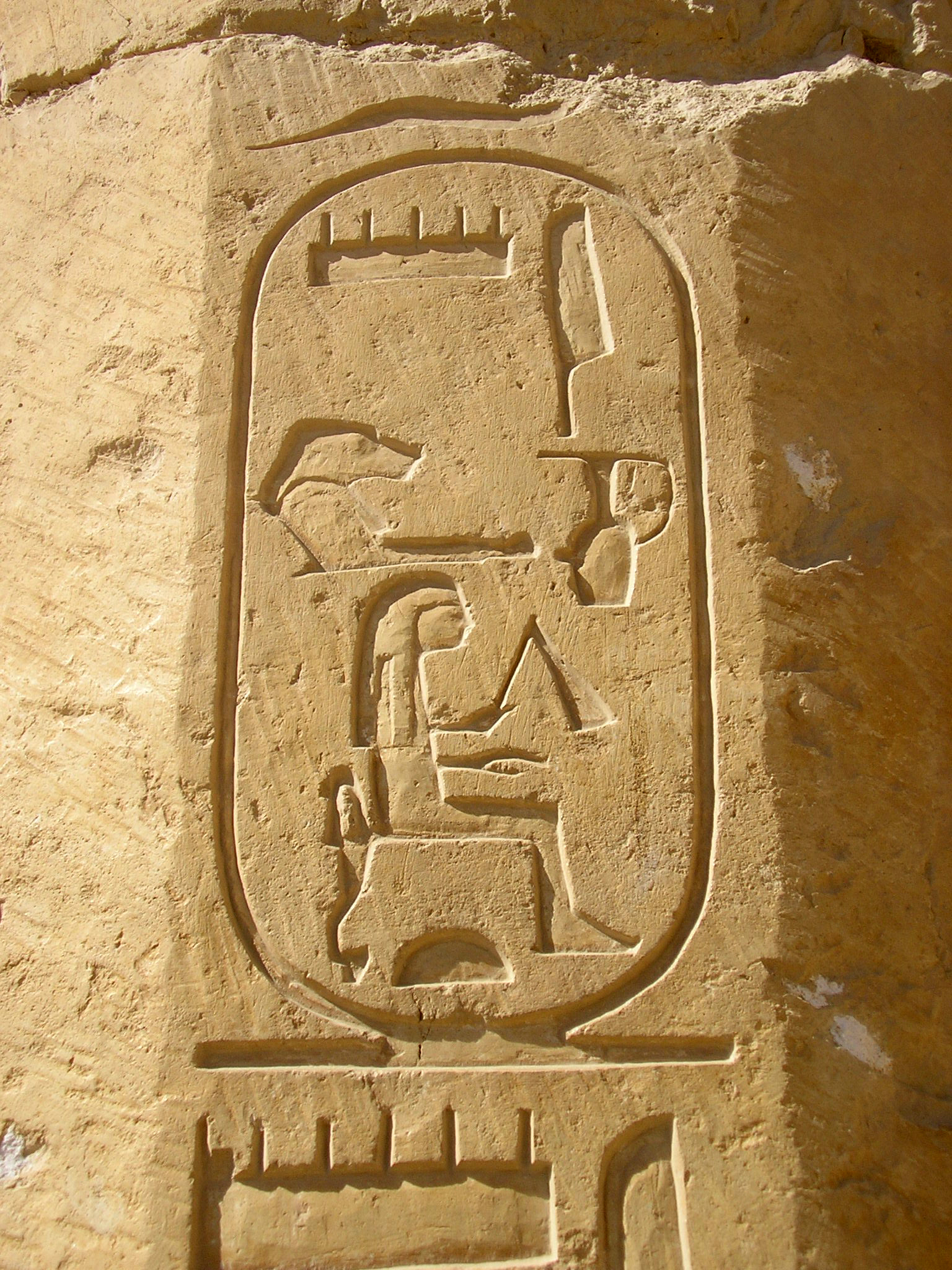 Cartucho real que representa a la Reina Hatshepsut en una de las columnas de su tumba, Deir el-Bahari, Egipto