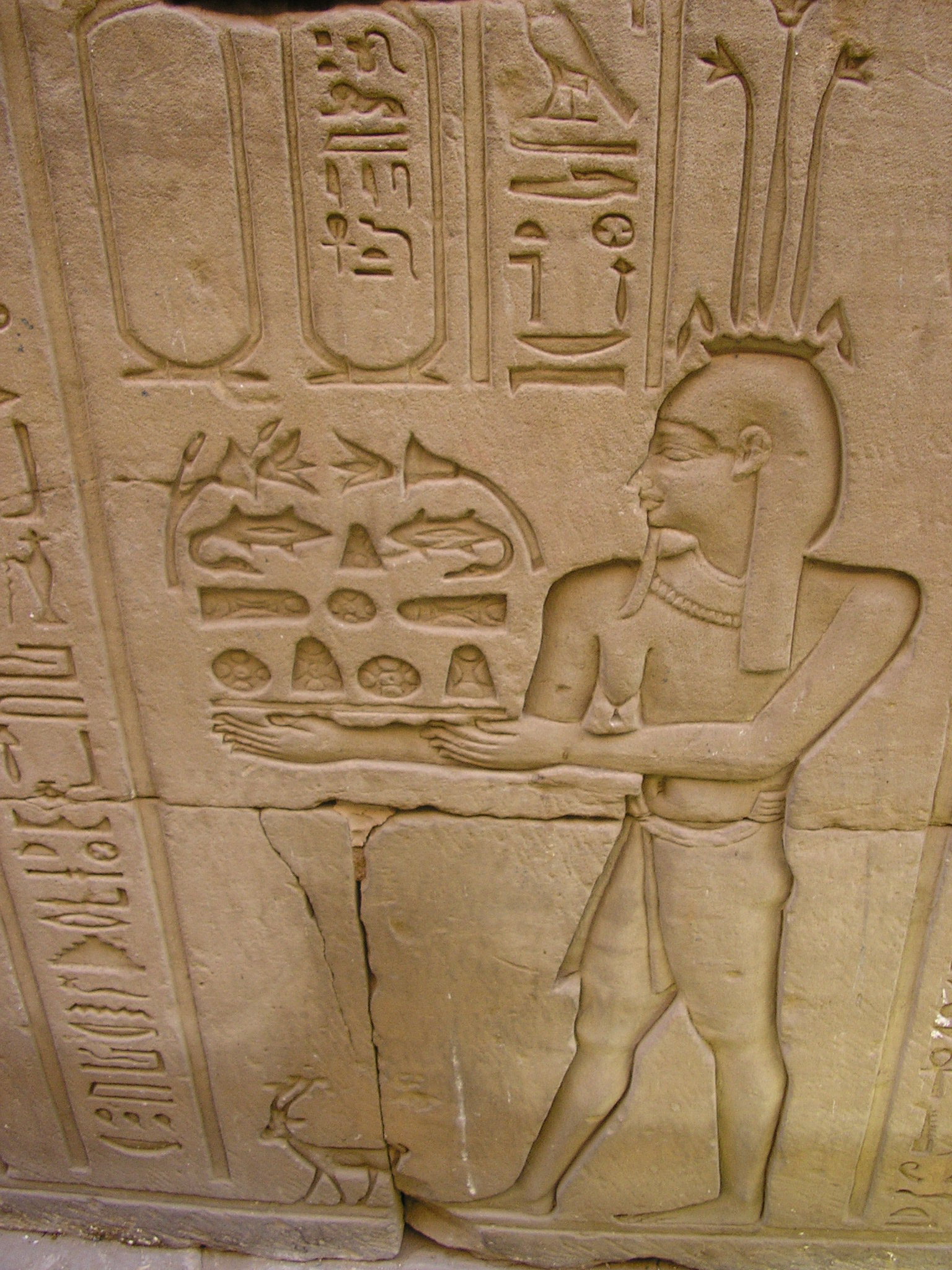 Bajorrelieve del dios Hapy con ofrendas al dios horus, Edfu, Egipto