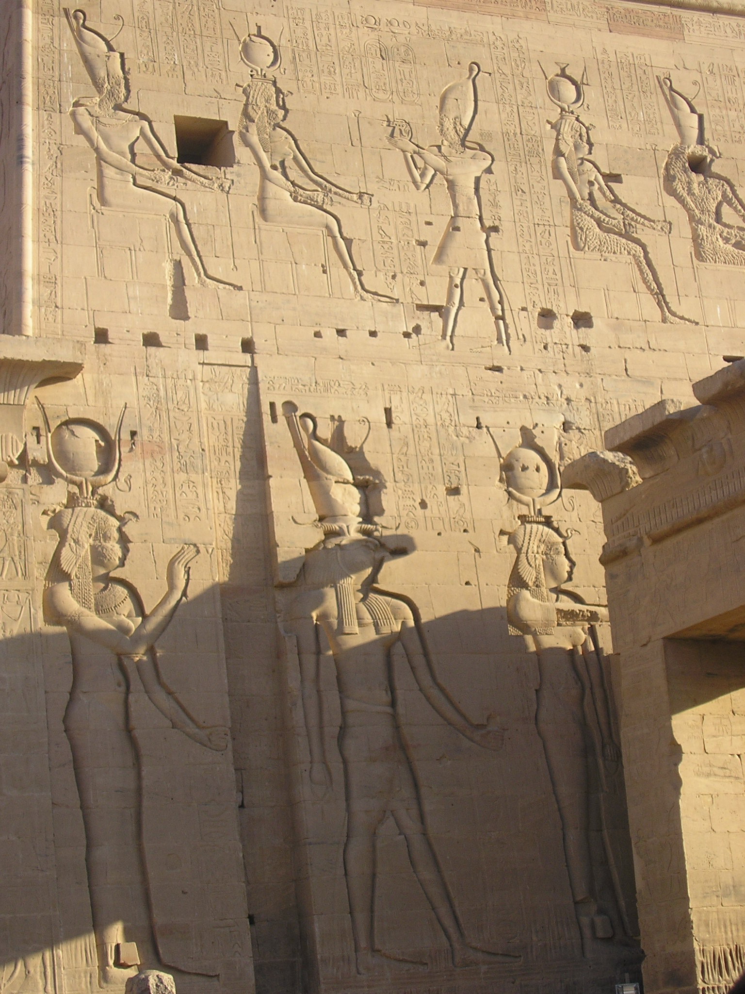 Bajorrelieves de los pilonos del templo de Isis en Philae, Aswan, Egipto