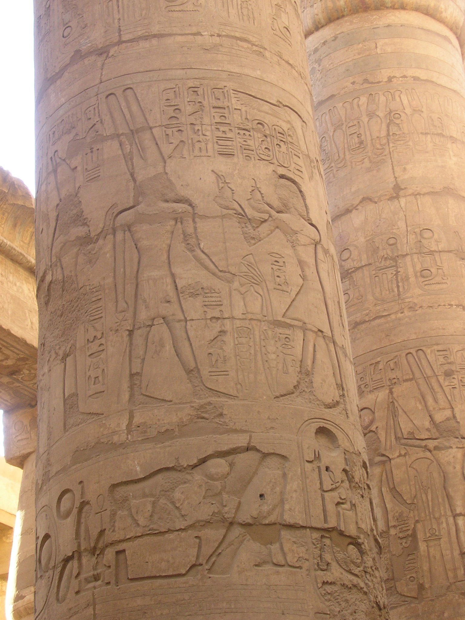 Decoración de unas de las 134 columnas que componen la sala de las columnas de Karnak, Luxor, Egipto