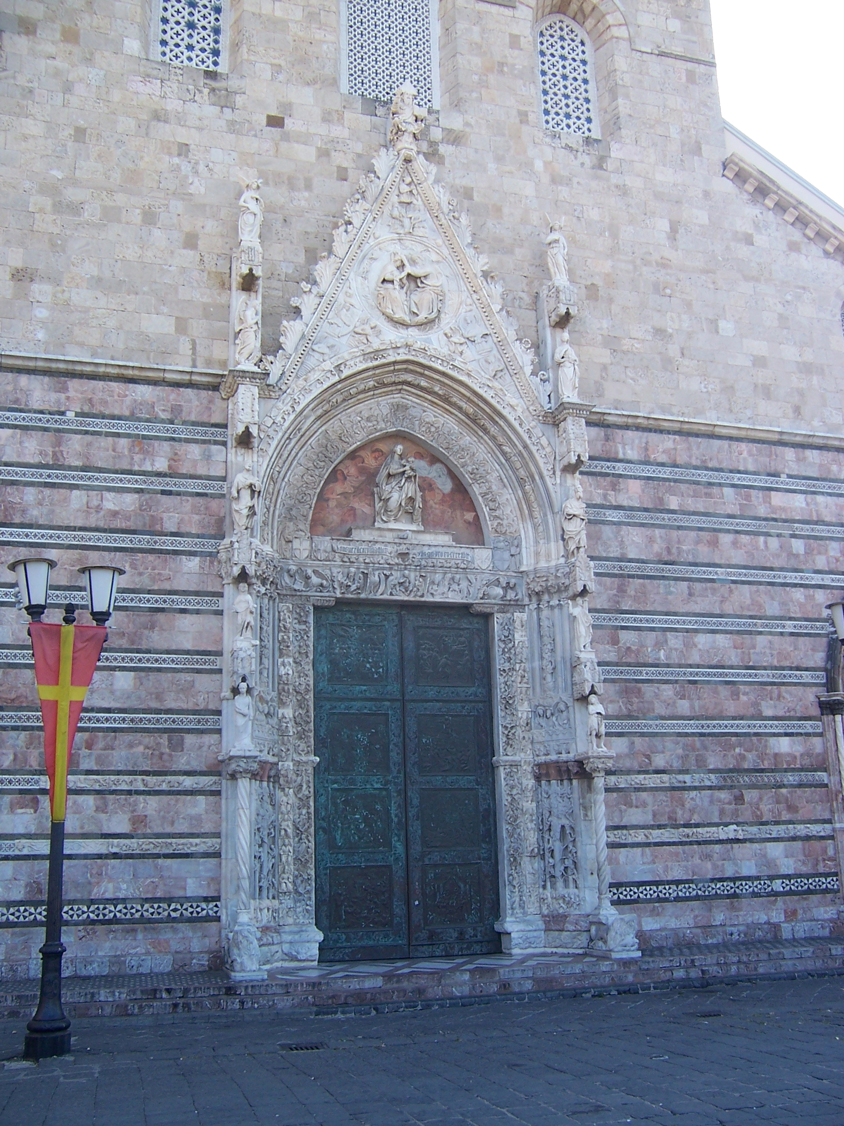 Puerta de la Catedral de Messina, Sicilia, Italia