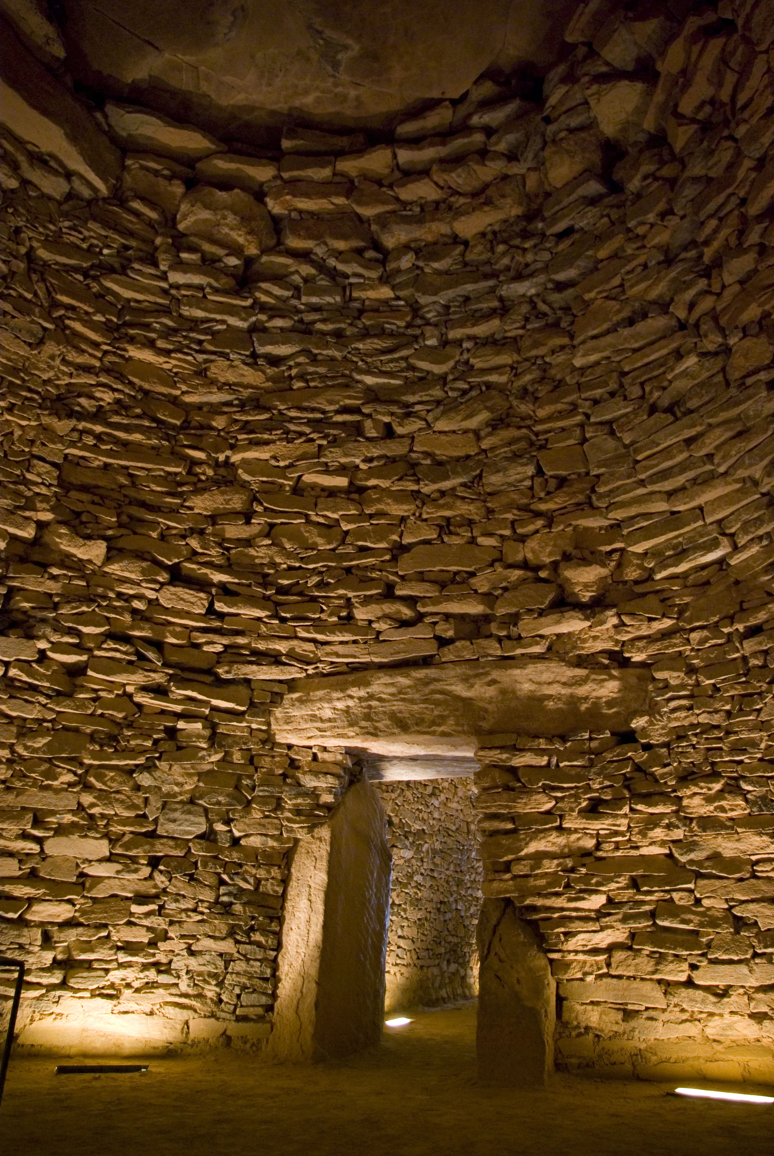 La primera cámara, de planta circular, formada por una falsa bóveda, en el Dolmen de El Romeral, Antequera, Málaga
