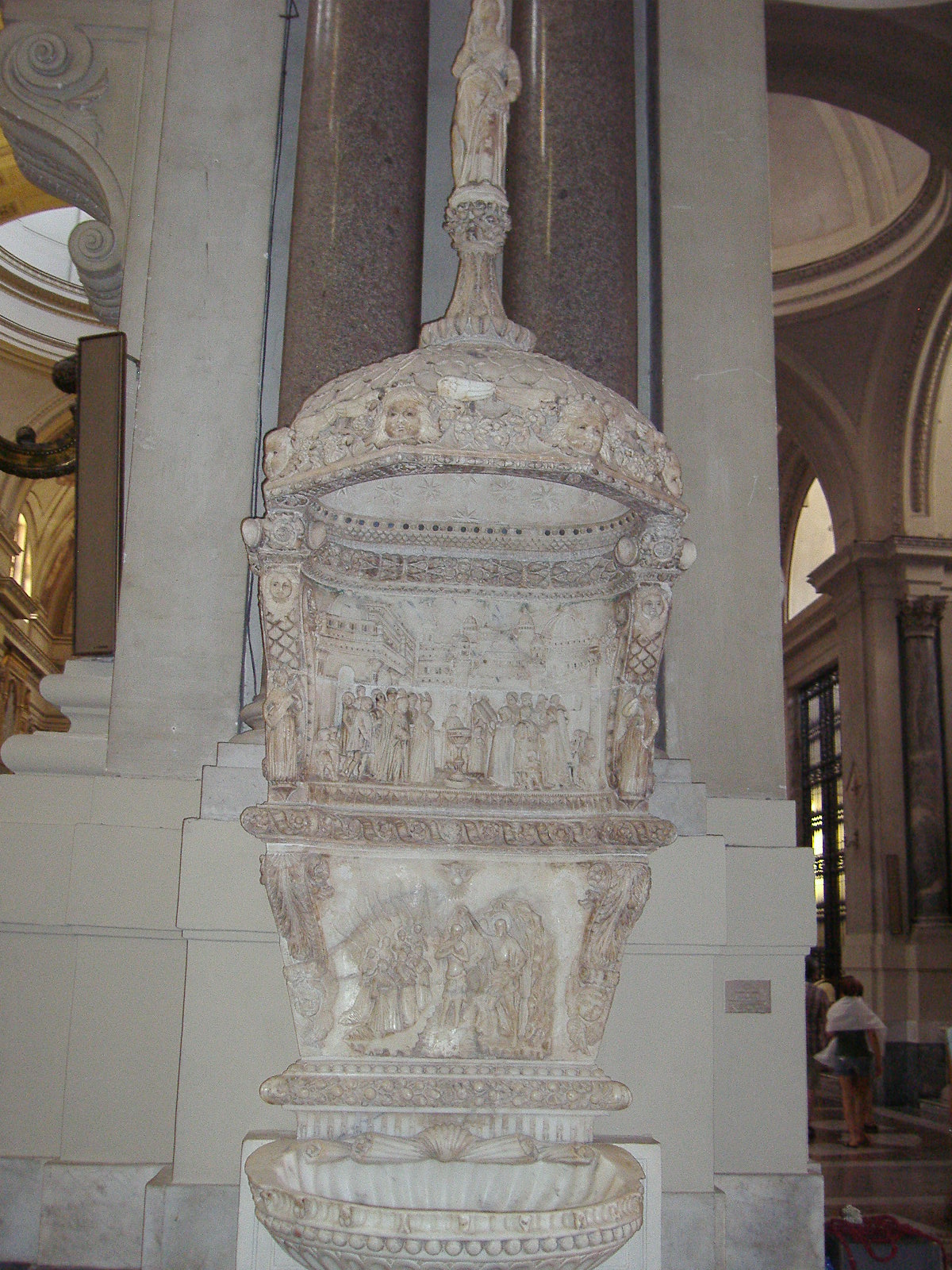Pila en el interior de la Catedral de Palermo en Sicilia, Italia