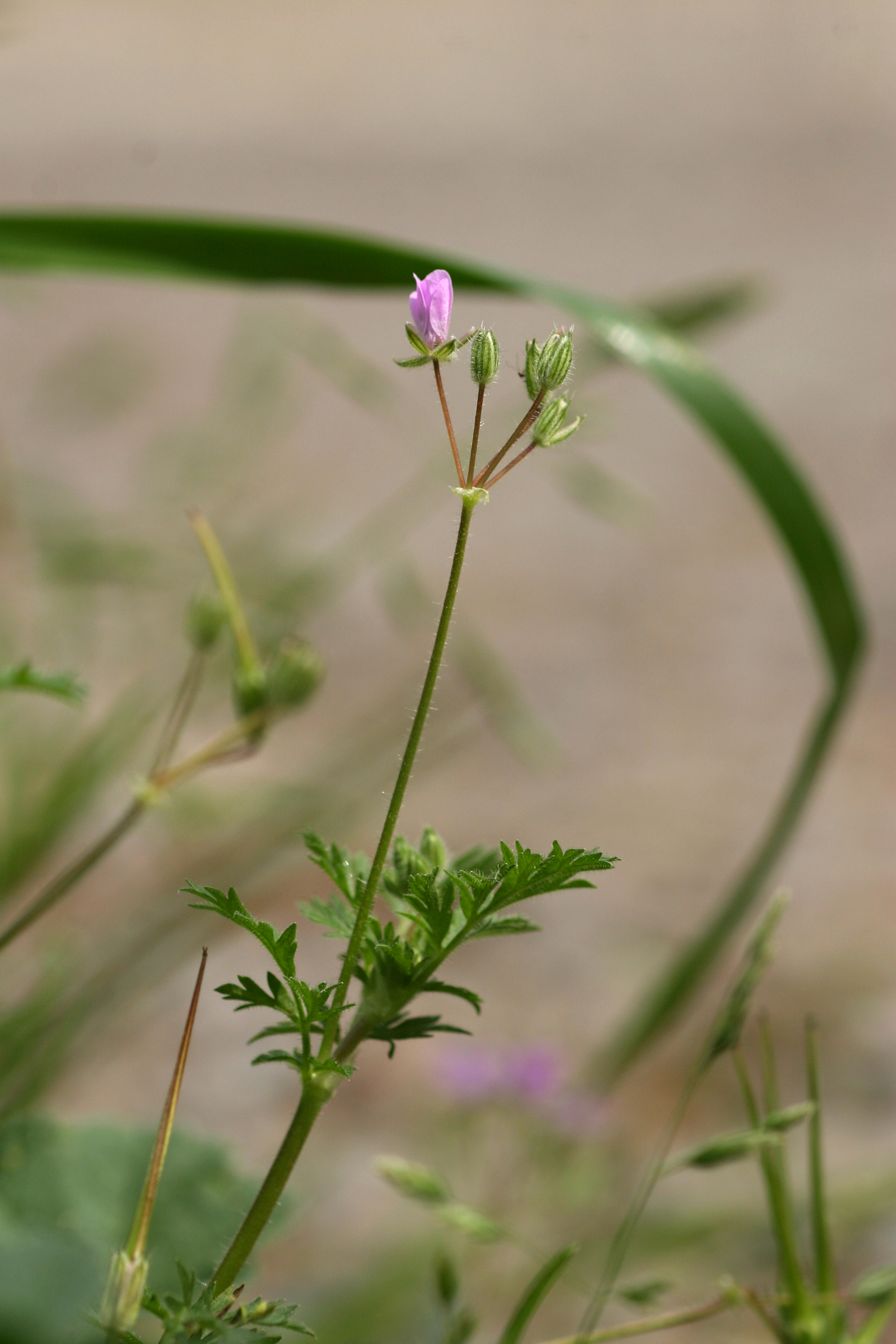 Agujas de pastor o Pico de cigüeña (Erodium ciconium), en Cercedilla, Madrid