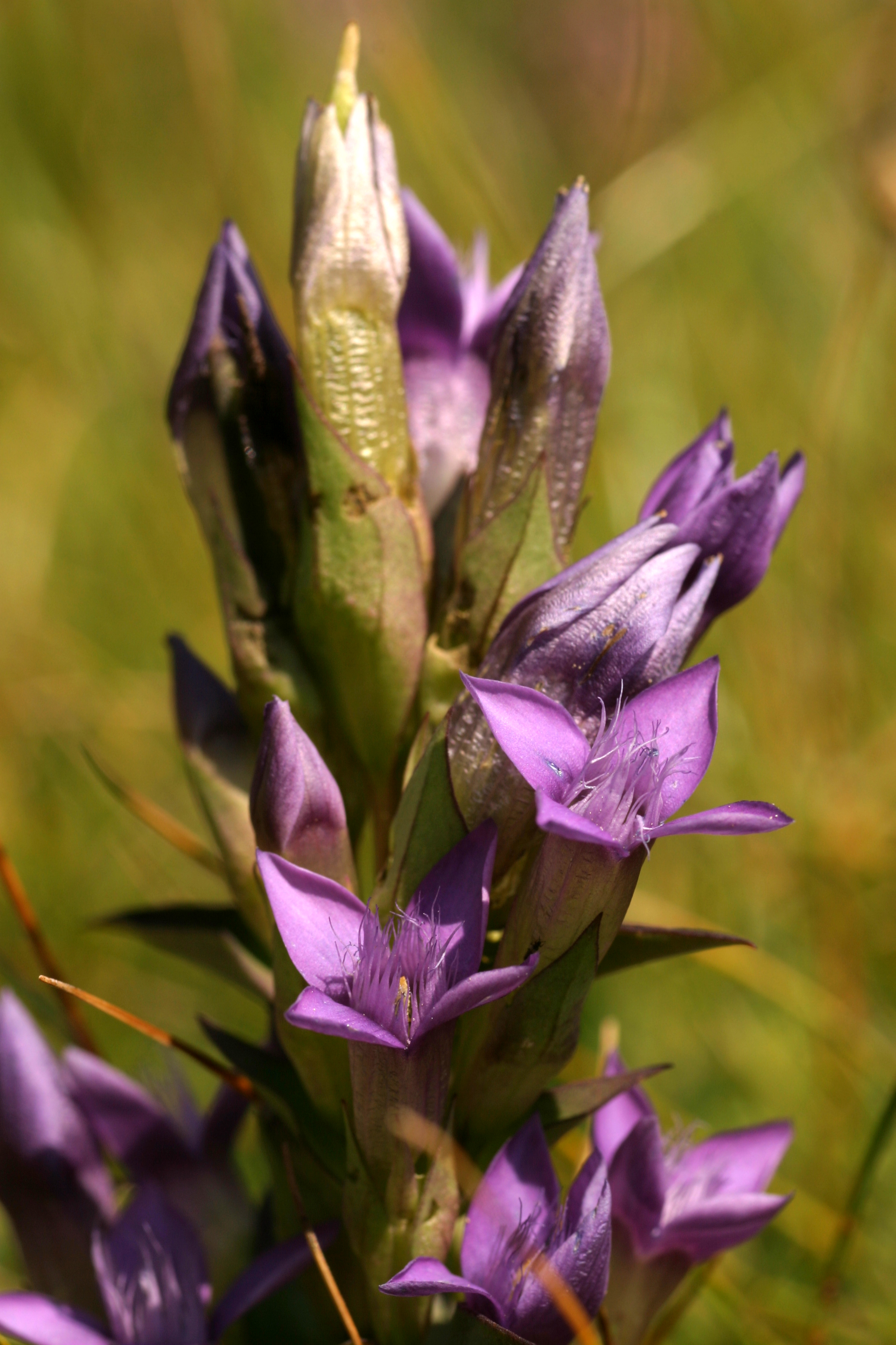 Flores de Genciana de campo (Gentianella campestris), en Benasque, Huesca