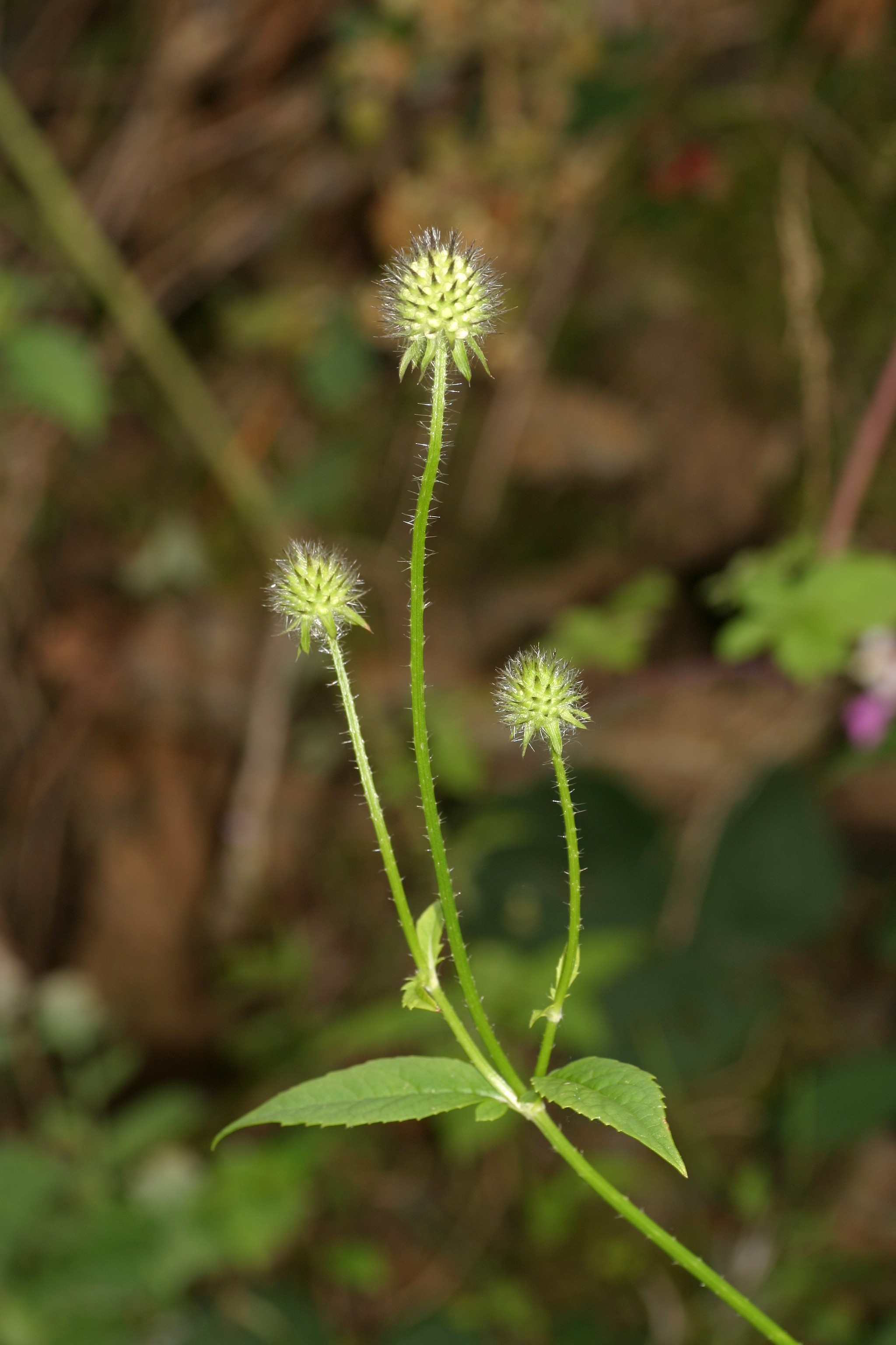 Flores inmaduras y hojas de Dipsacus pilosus, en Valle de Arán, Lleida