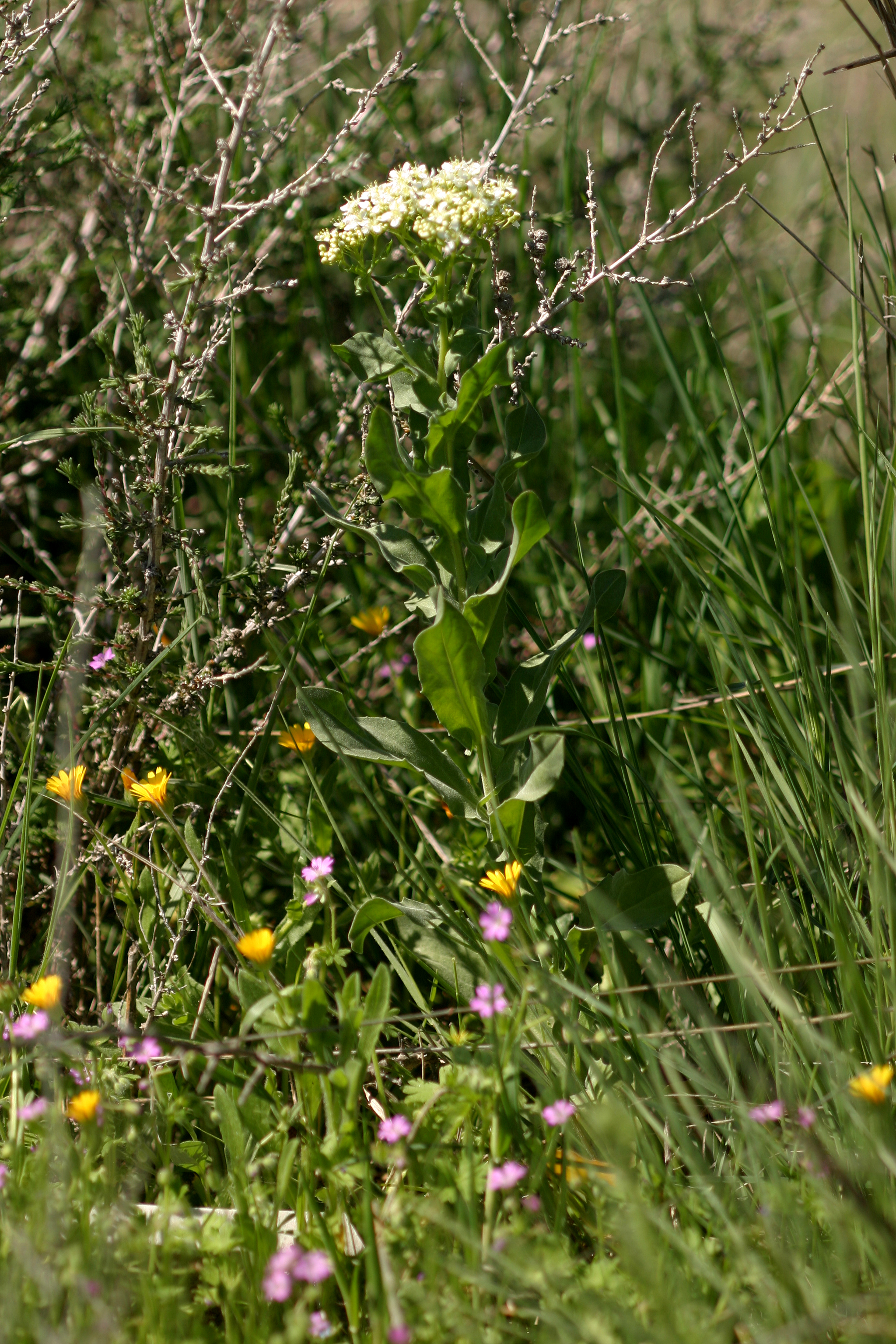Mastuerzo bárbaro u oriental, Draba o Capellanes (Cardaria draba), en Velilla de San Antonio, Madrid
