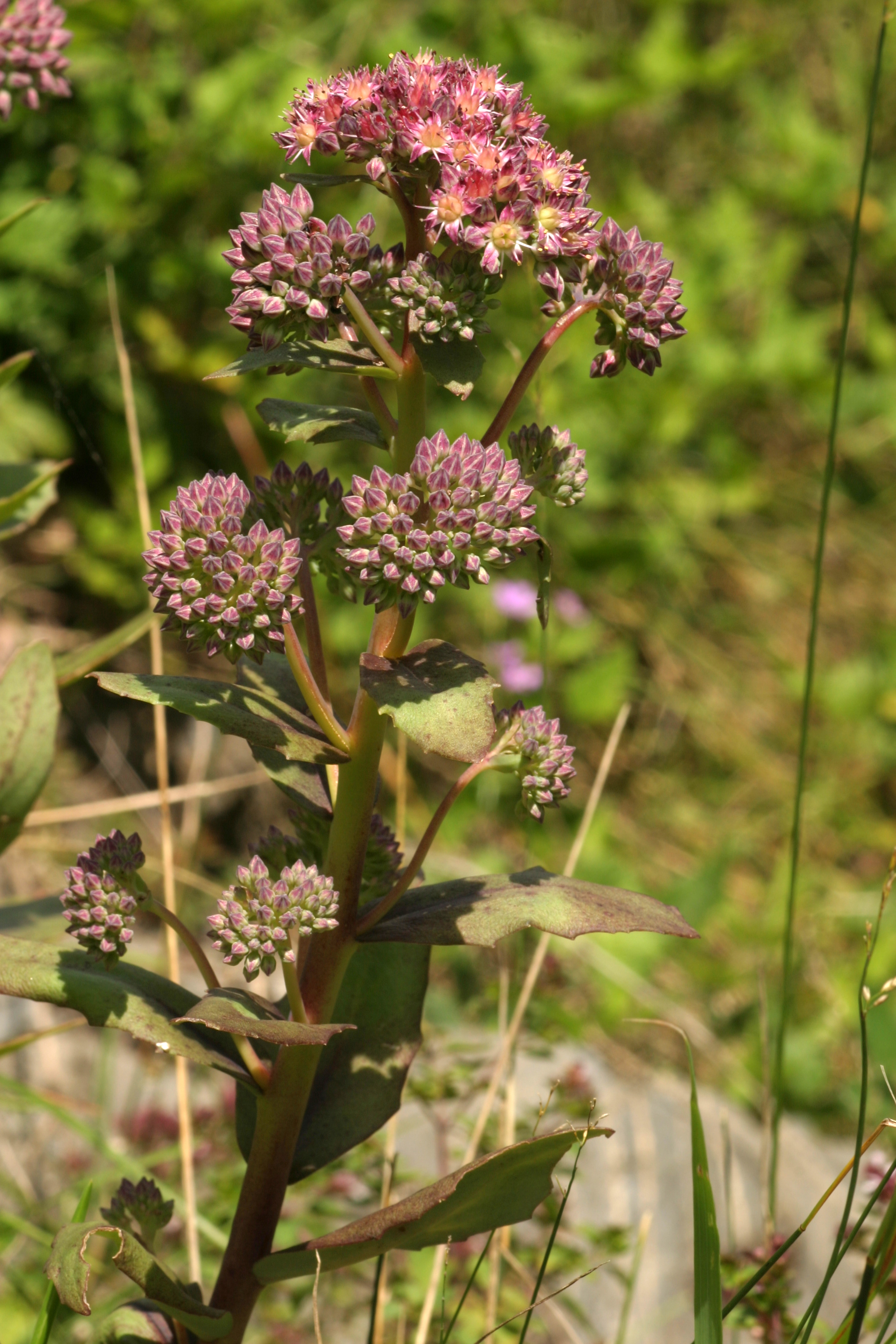 Hojas y flores de Hylotelephium telephium, en Pirineos