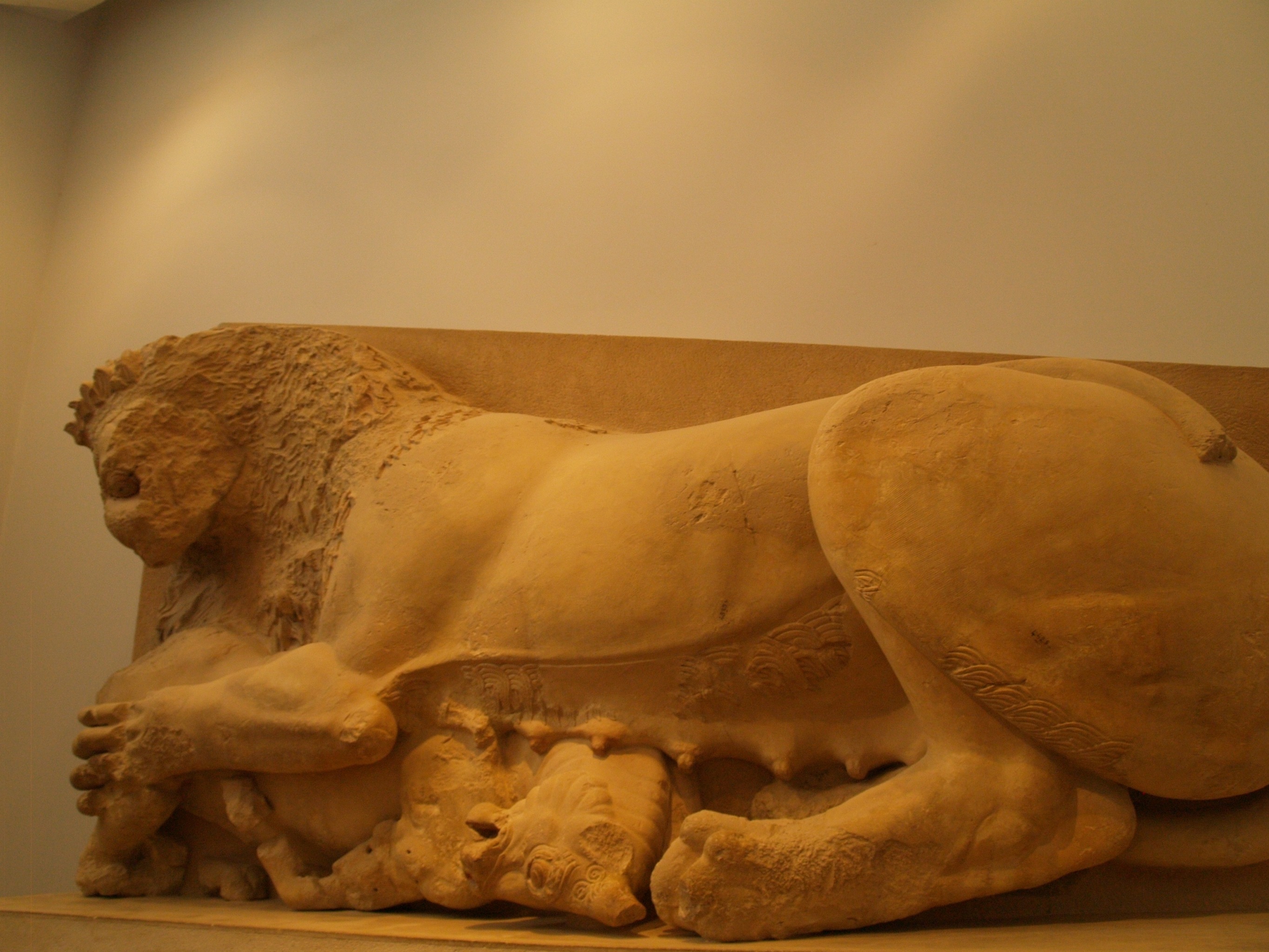 Escultura arcaica de león atacando a un toro, Museo de la Acrópolis, Atenas, Grecia