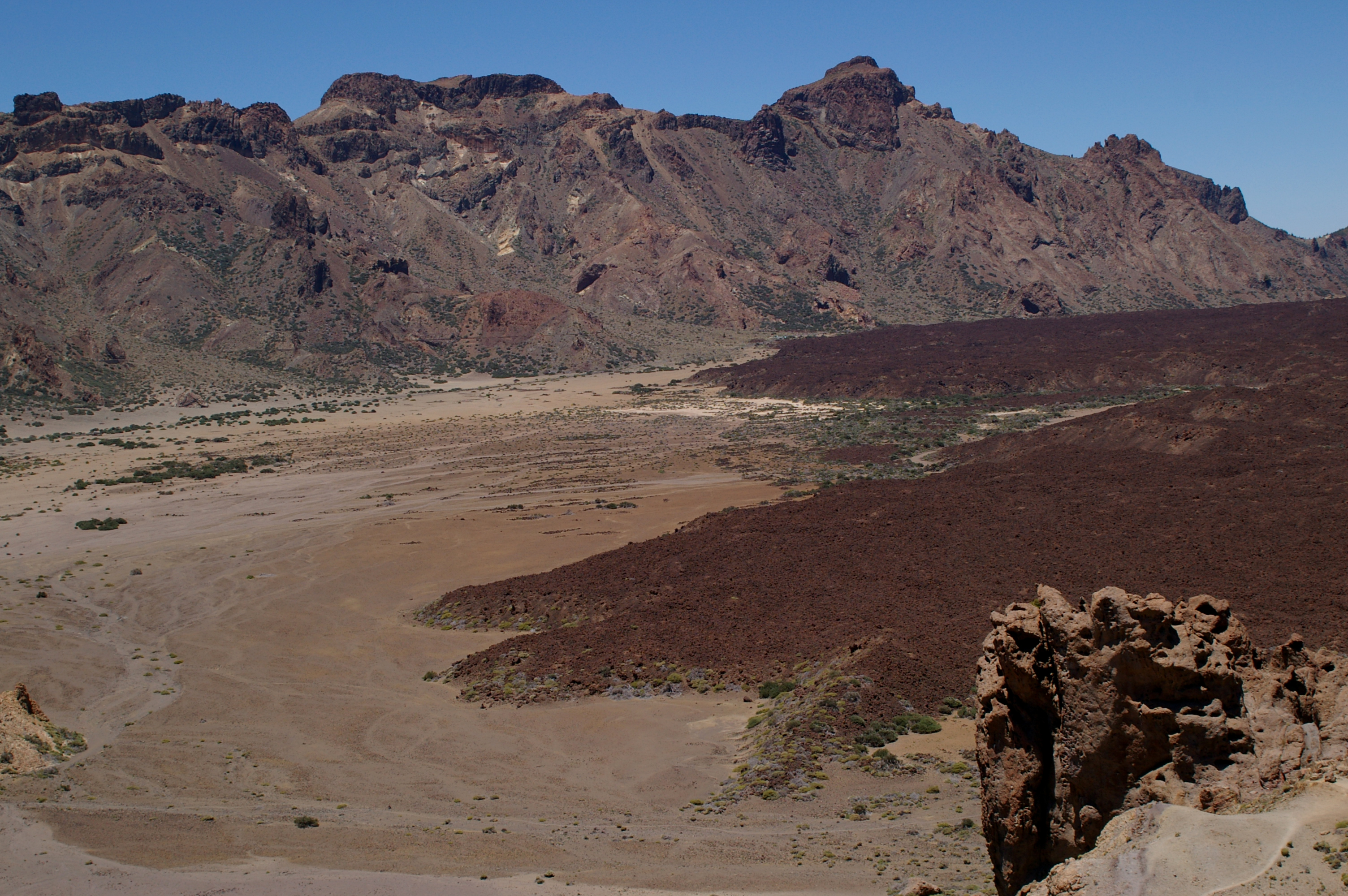 Vista de la caldera del Teide y el mar de magma solidificado desde "La Catedral", Tenerife