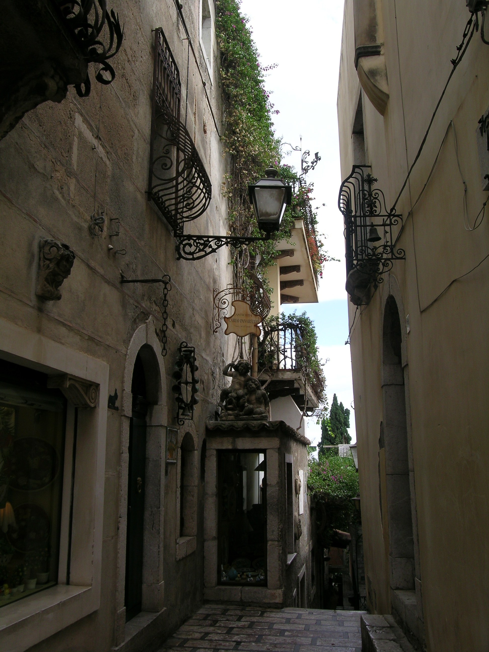 Calle Corso Umberto I en Taormina, Sicilia, Italia