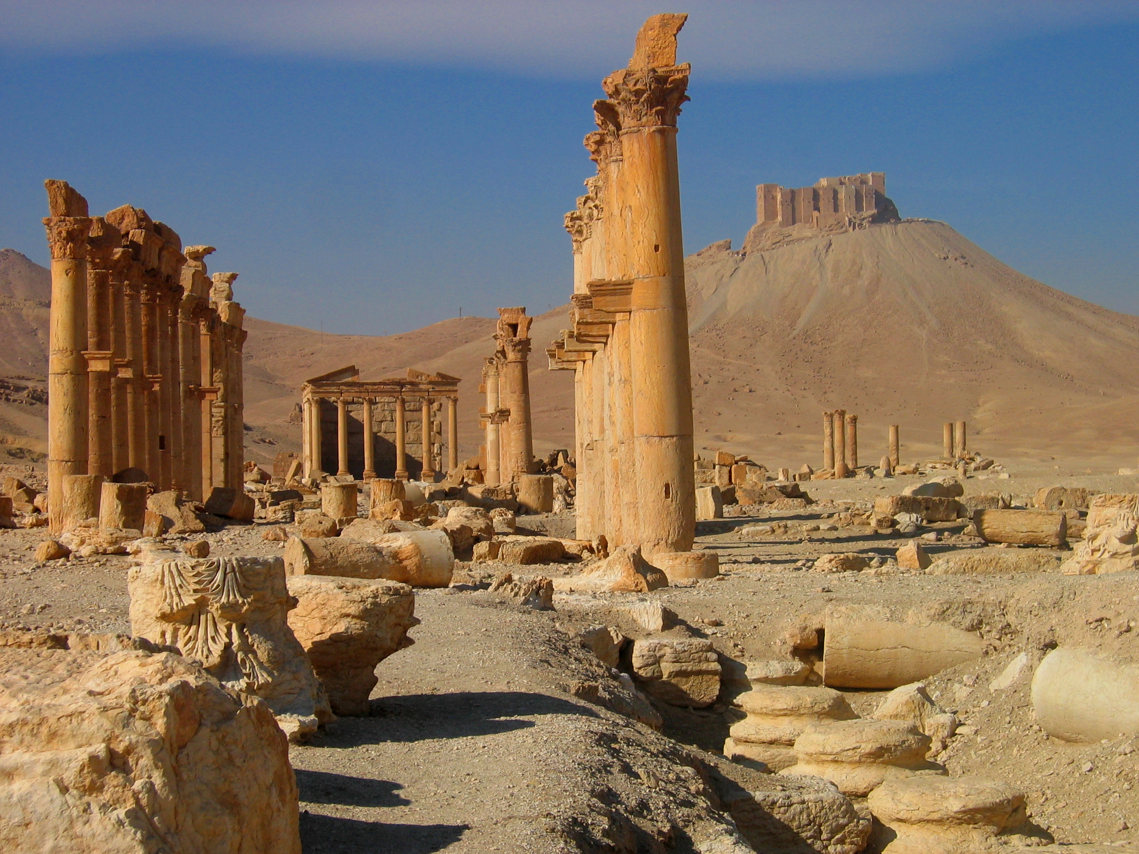 Templo de Zenobia y castillo Qal´at Ibn Maan sobre la colina, Palmira, actual Tadmor, Siria