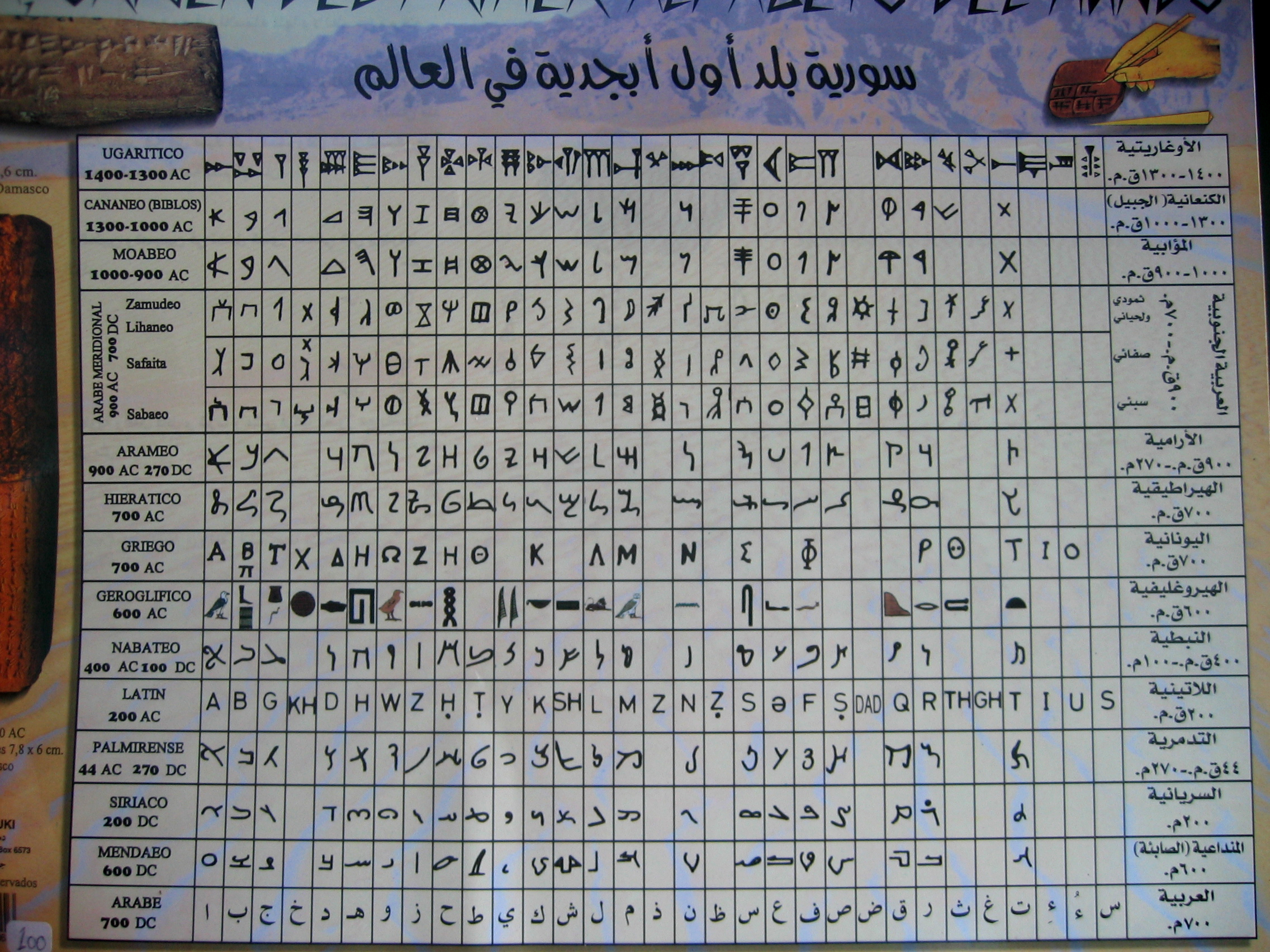 Esquema cronológico de los distintos alfabetos fonéticos, Siria
