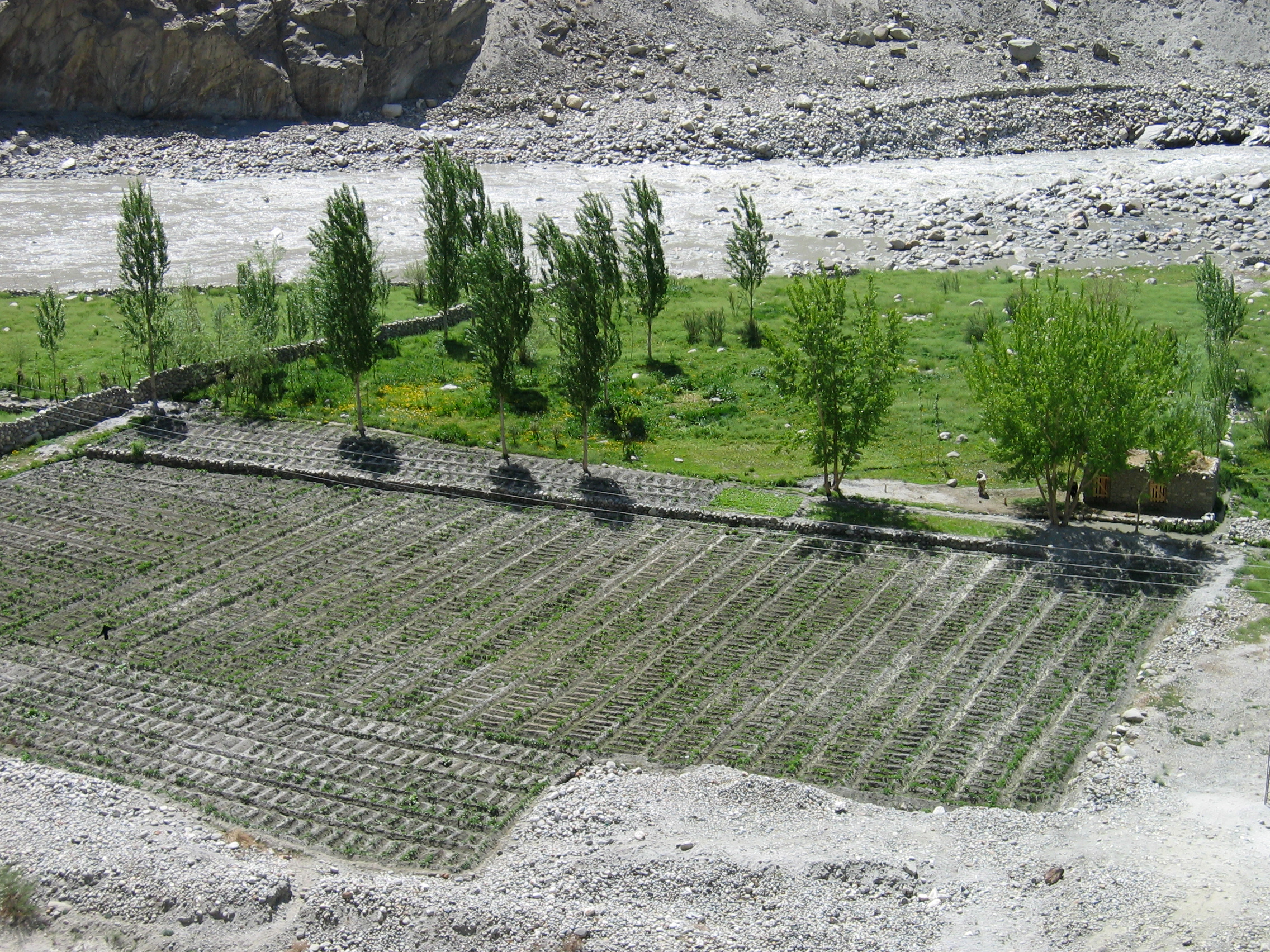 Campos de cultivo junto al río Hunza, Pakistán