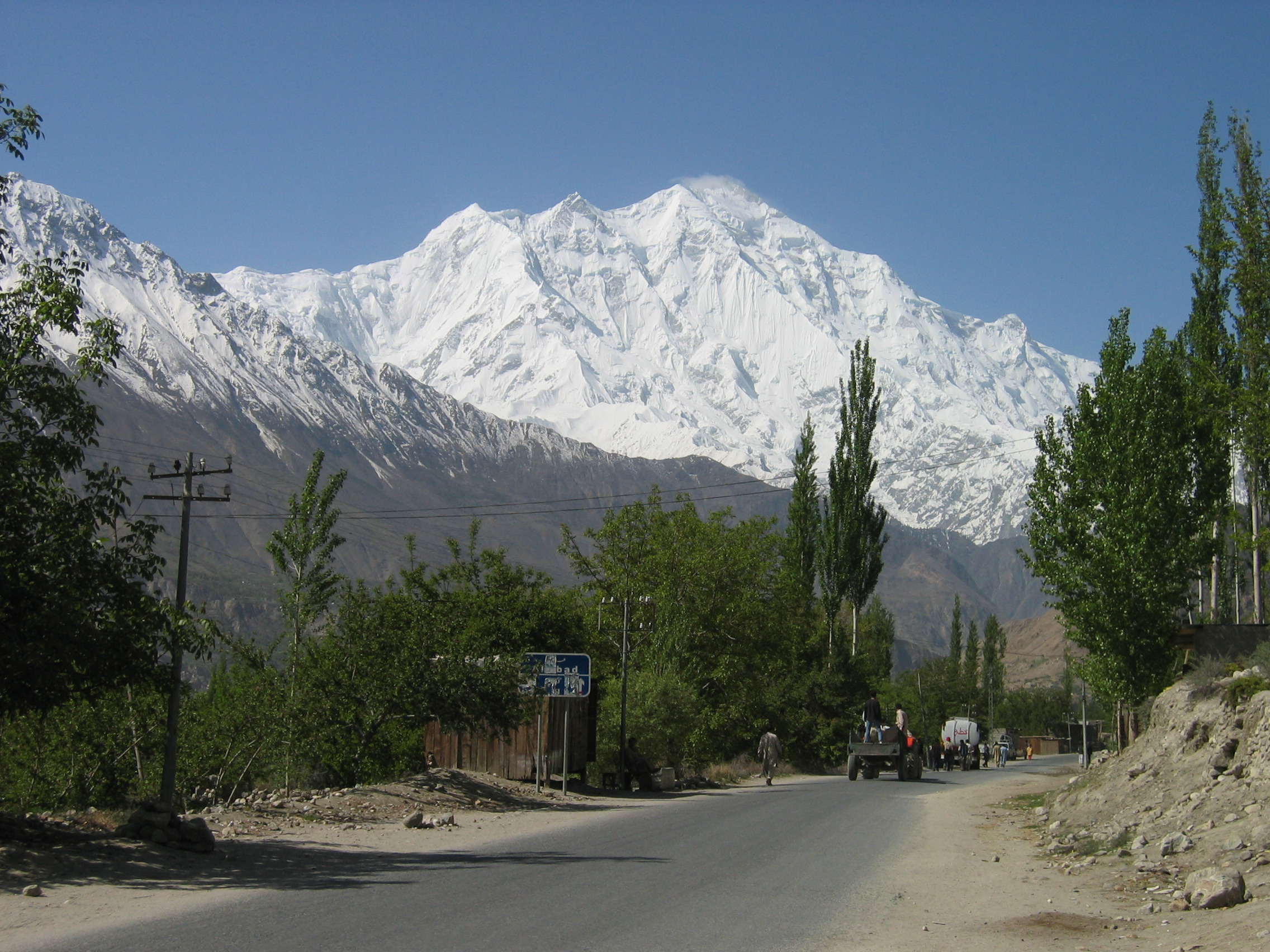 Vista del Rakaposhi desde Aliabad, valle de Hunza, Pakistán