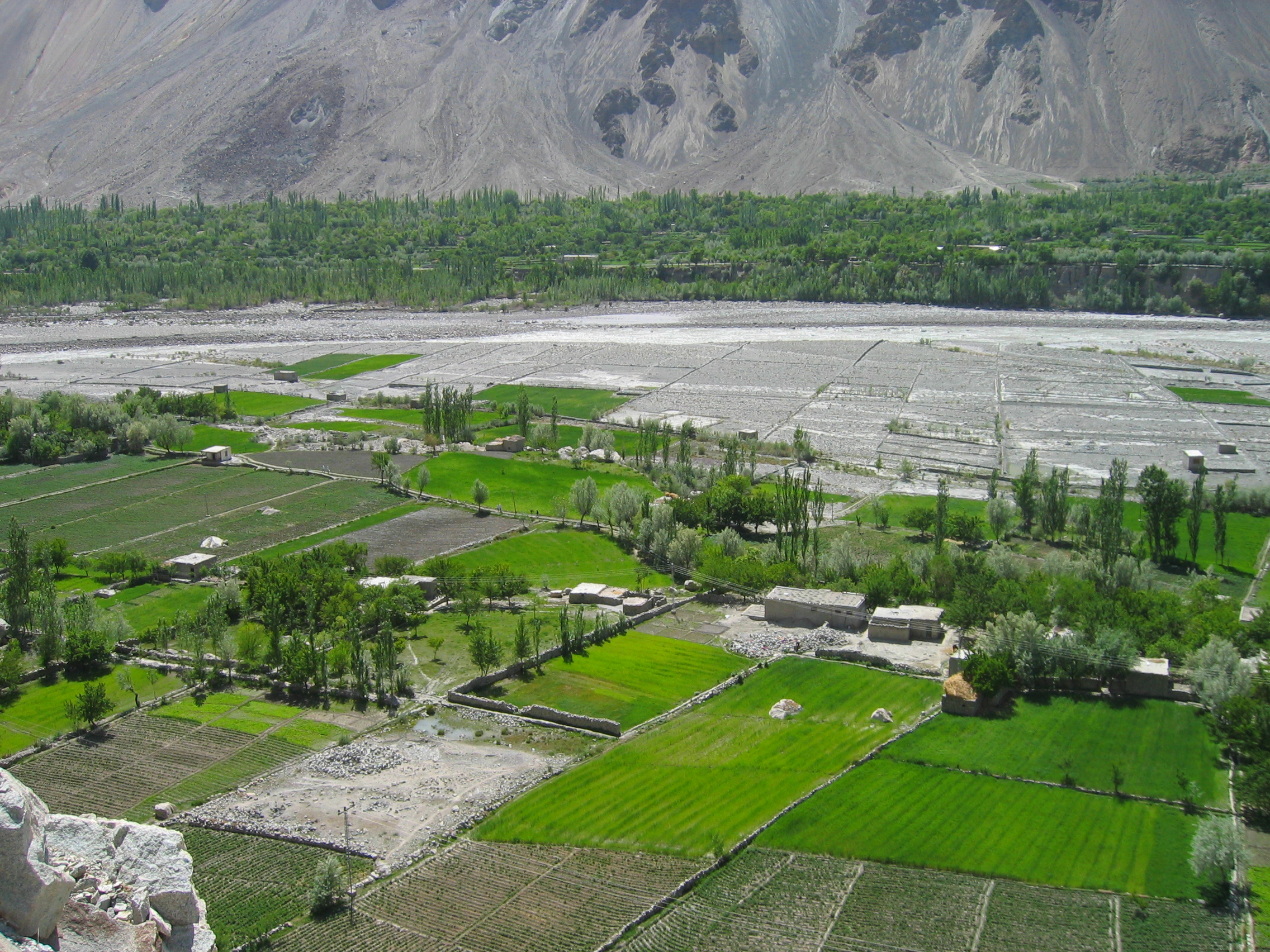 Campos de cultivo cercanos a Gilgit, Pakistán