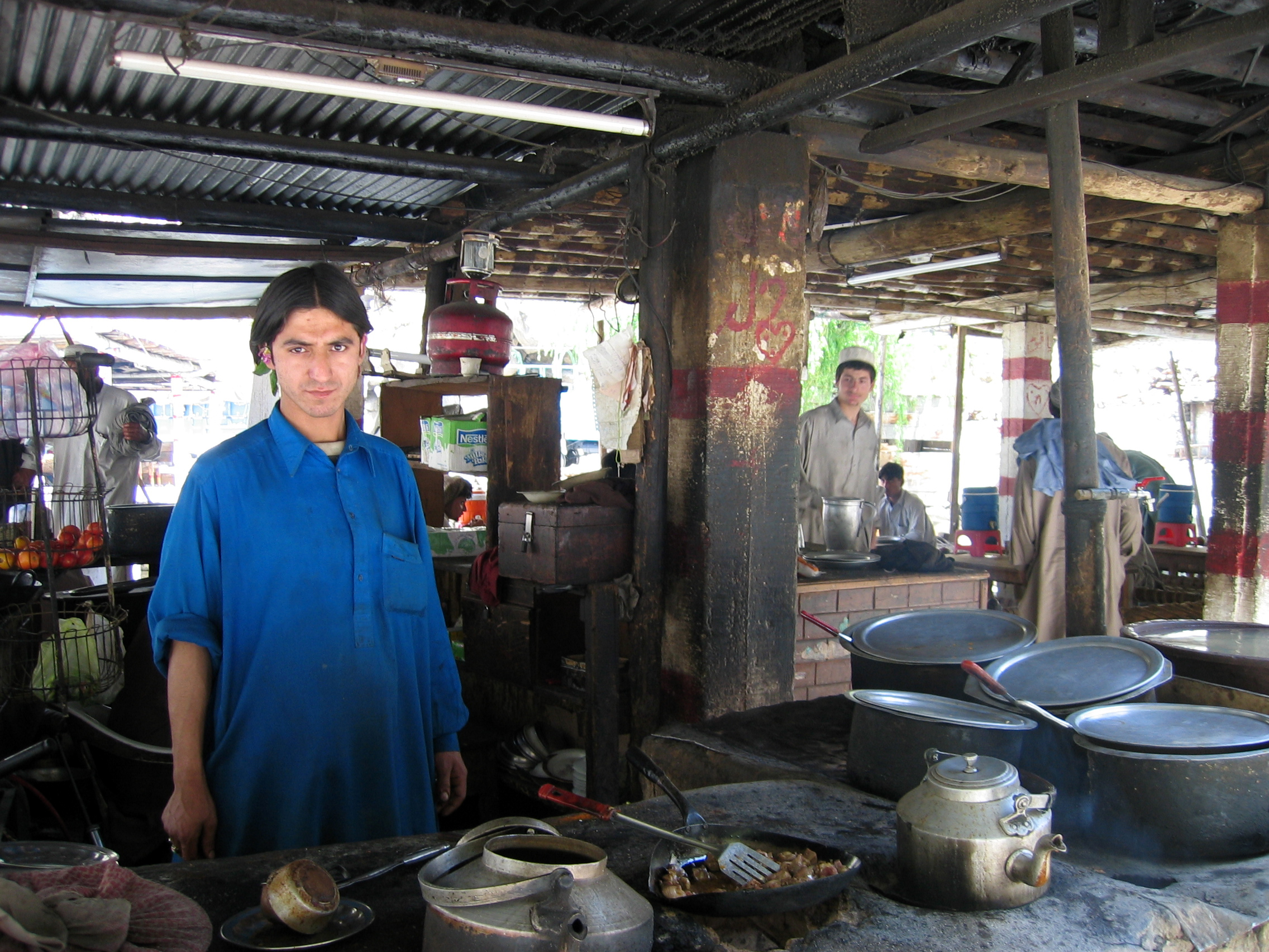 Cocina en un restaurante de la autopista de Karakorum, Pakistán