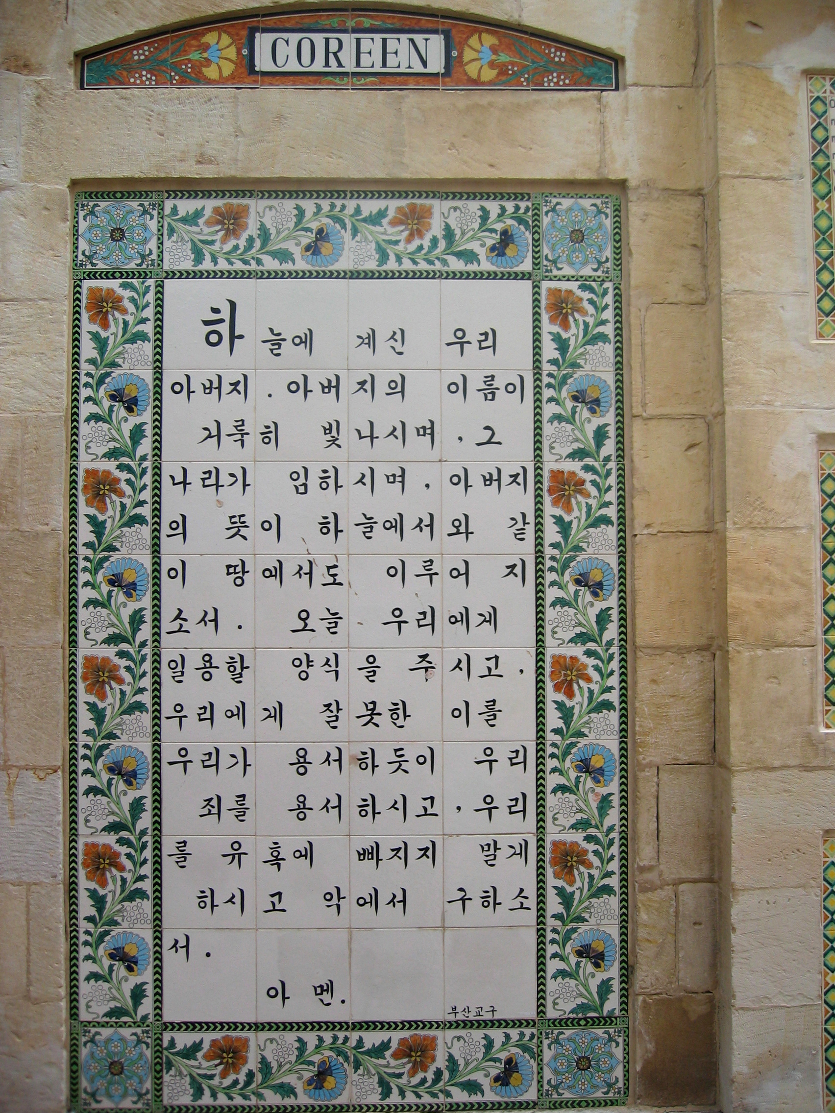 El Padre Nuestro en coreano, Jerusalén, Israel