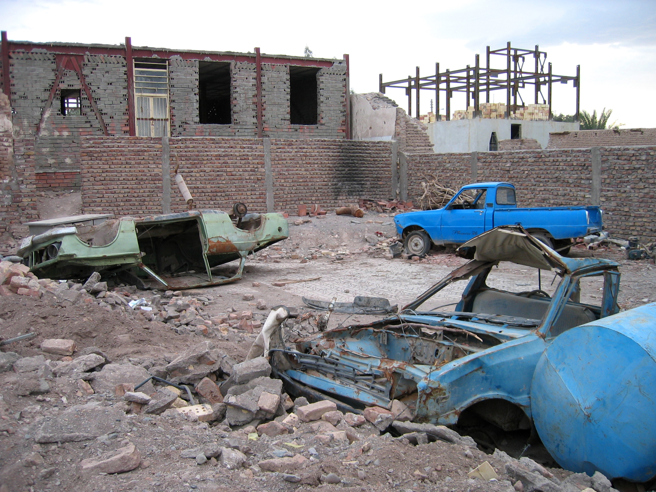 Coches destrozados en el terremoto de 2003 en Bam, provincia de Kermán, Irán