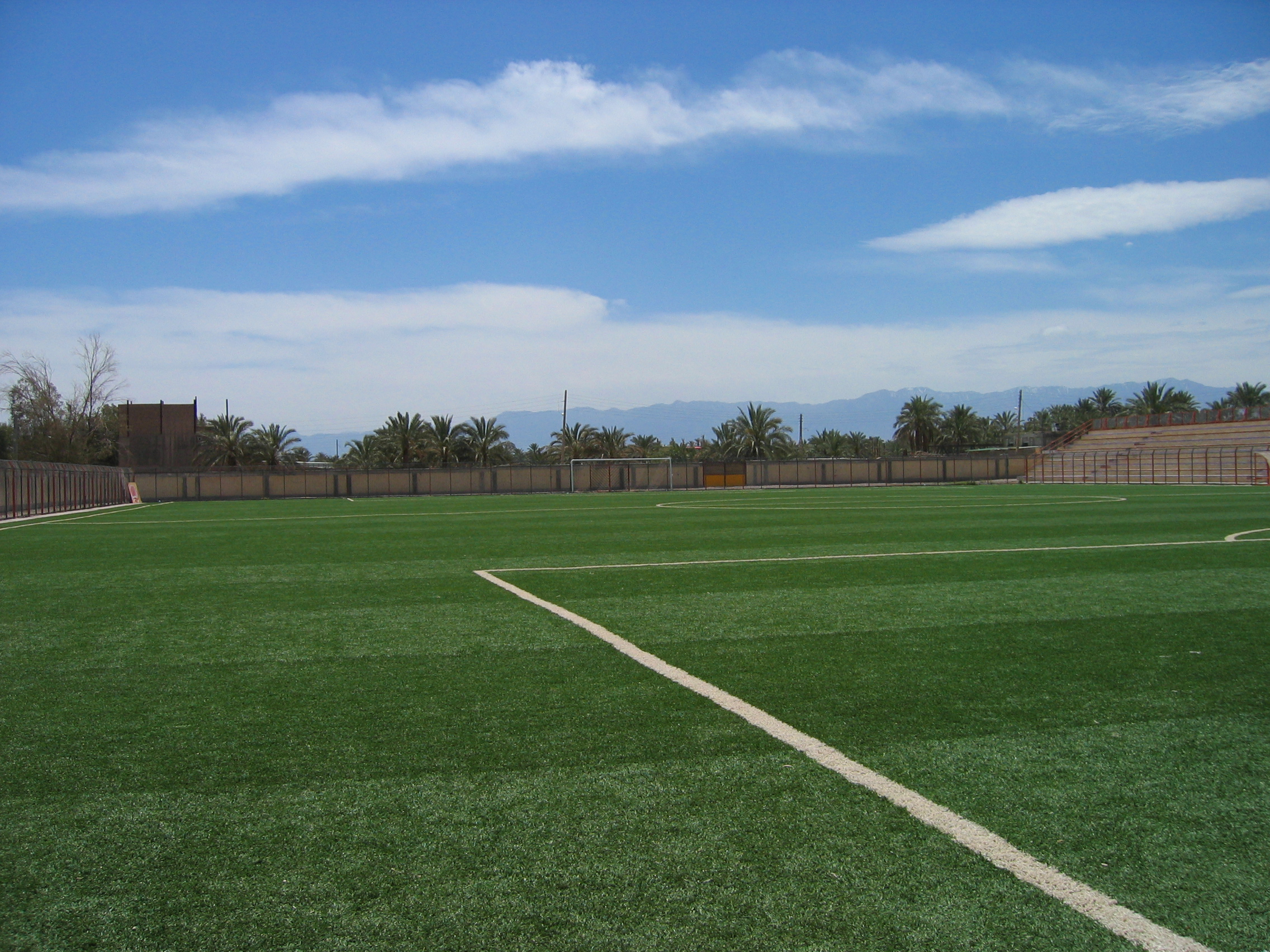 Campo de fútbol construido con fondos humanitarios en Bam, provincia de Kermán, Irán