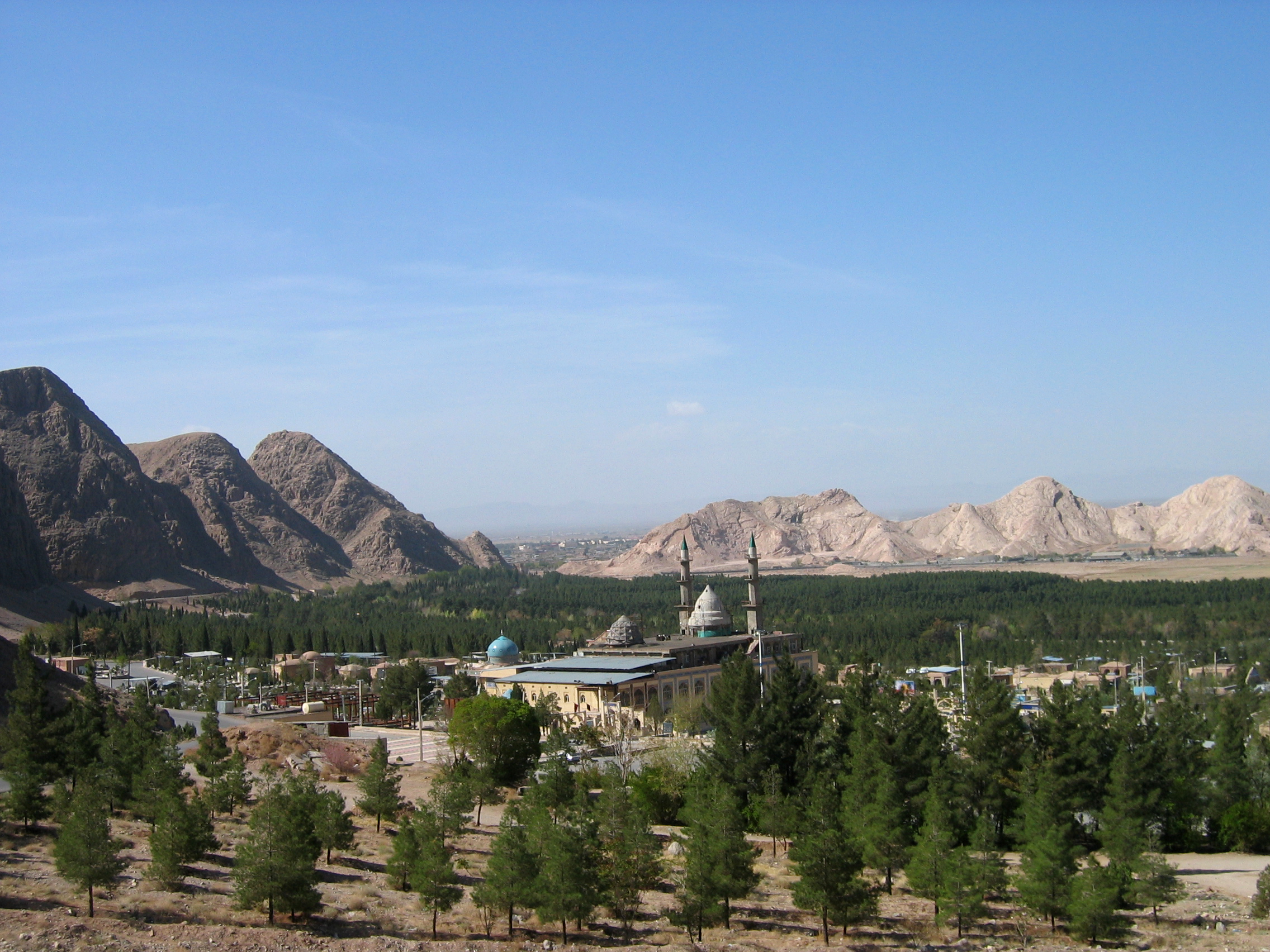 Vista general del complejo de mezquitas a las afueras de Kermán, Irán