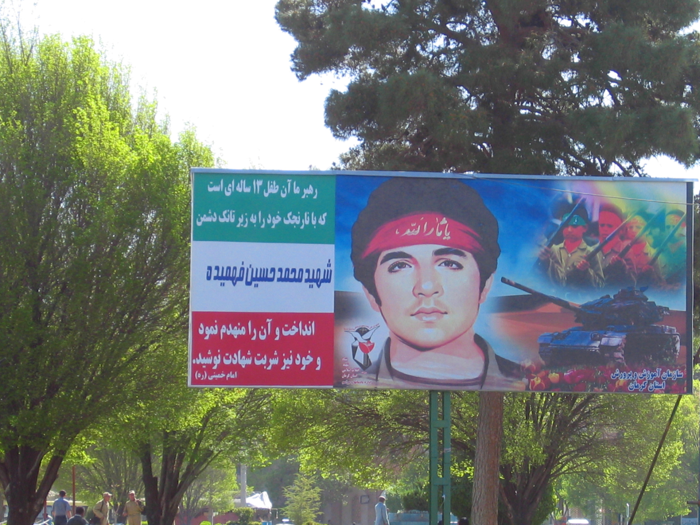 Cartel recordatorio de los mártires de la guerra Irán-Irak, Kermán, Irán