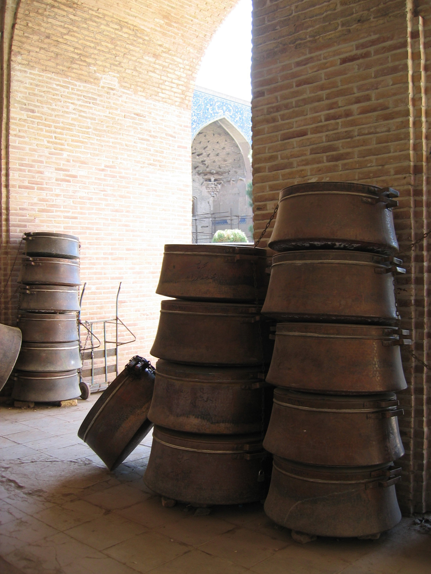 Tienda de calderos en el bazar Vakil, Kermán, Irán
