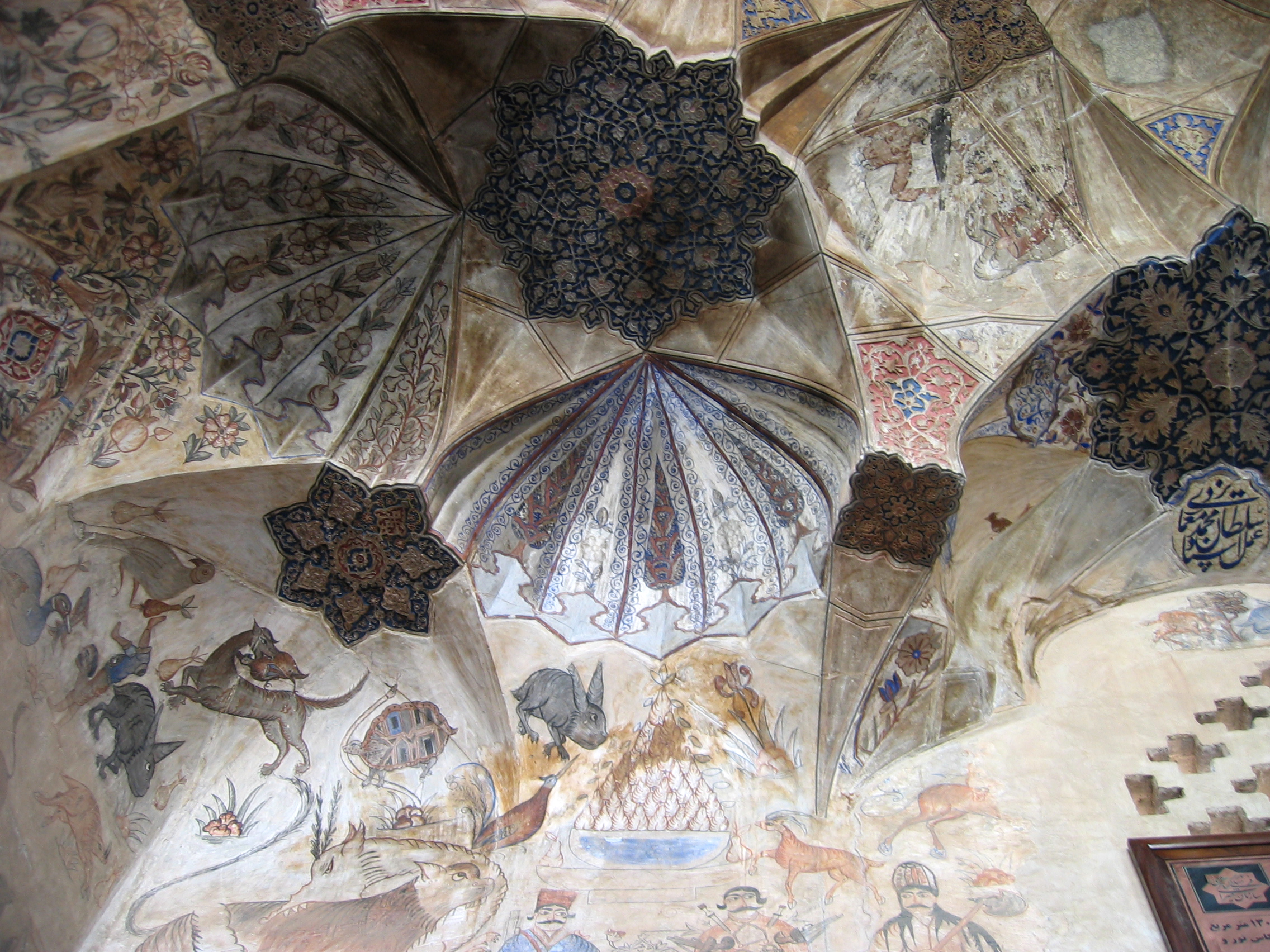 Detalle de frescos en la entrada a un hamam en el bazar, Kermán, Irán