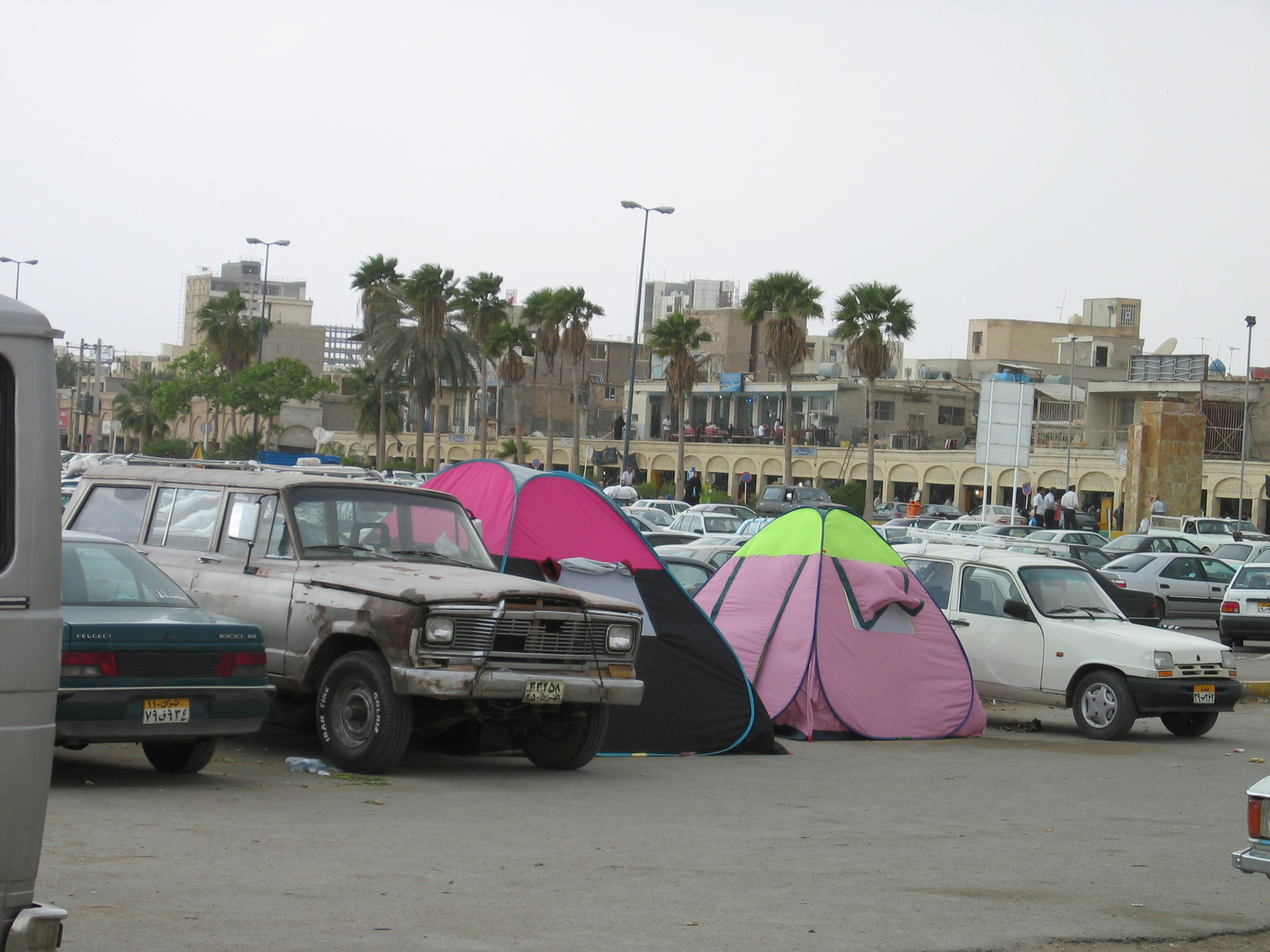 Acampando en un aparcamiento de Bandar-e Abbas, estrecho de Ormuz, Golfo Pérsico, Irán