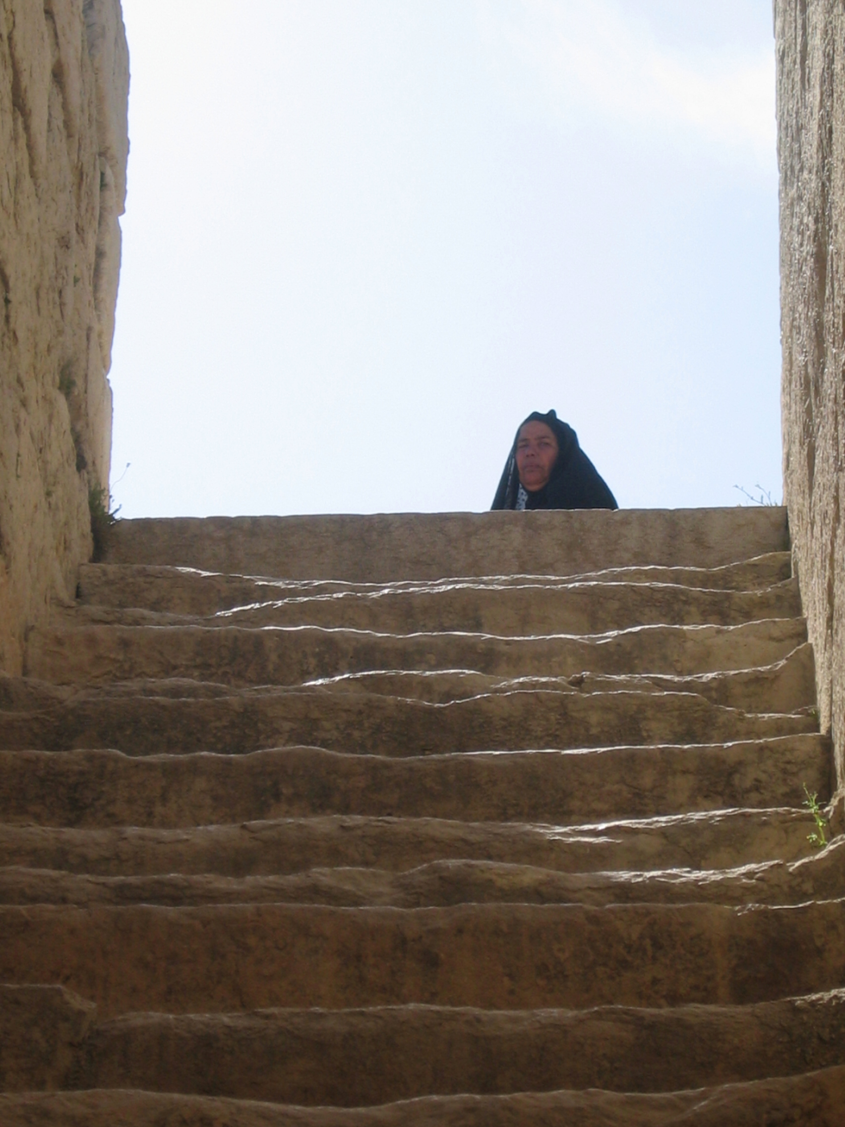 Turista local en el acceso al Templo de Anahita, Bishapur, Irán